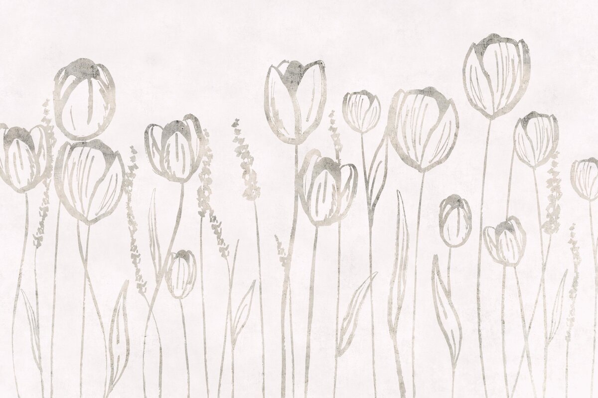 Fototapete: Abstraktion einer beigen Wiese mit Tulpen