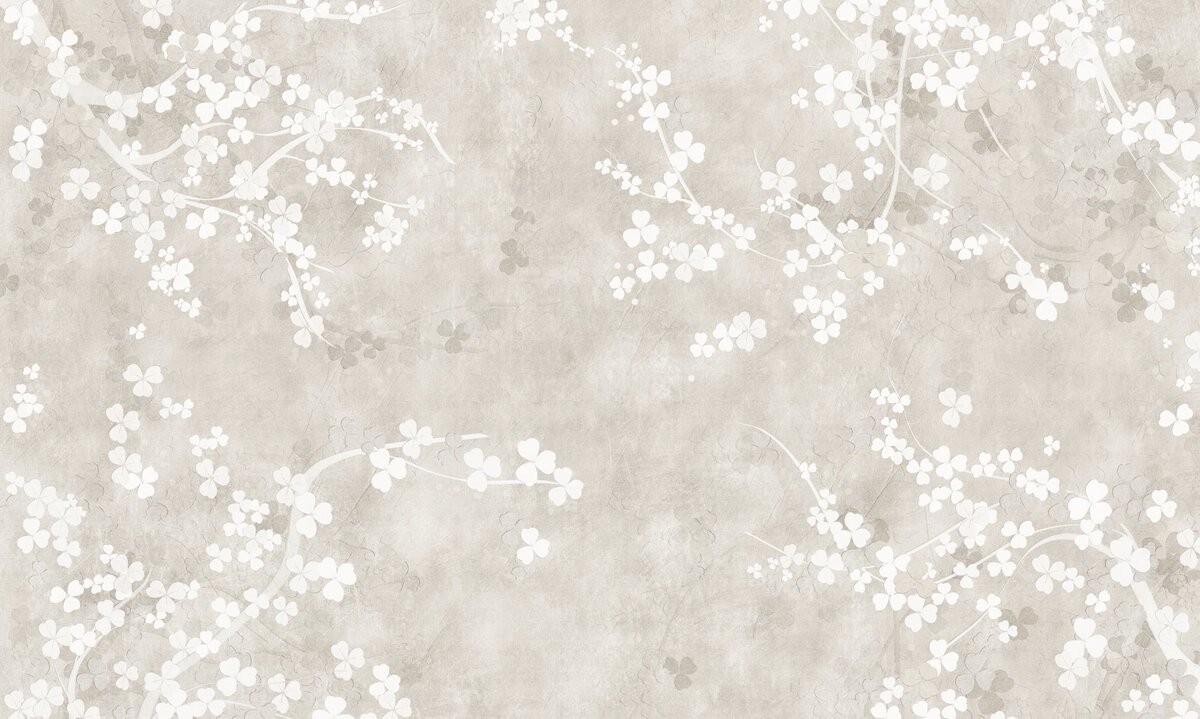 Fototapete: Äste mit weißen Blüten auf beigem Hintergrund