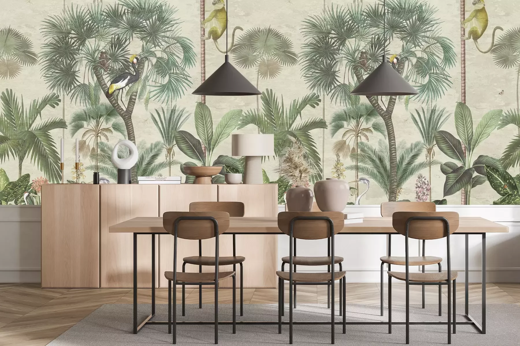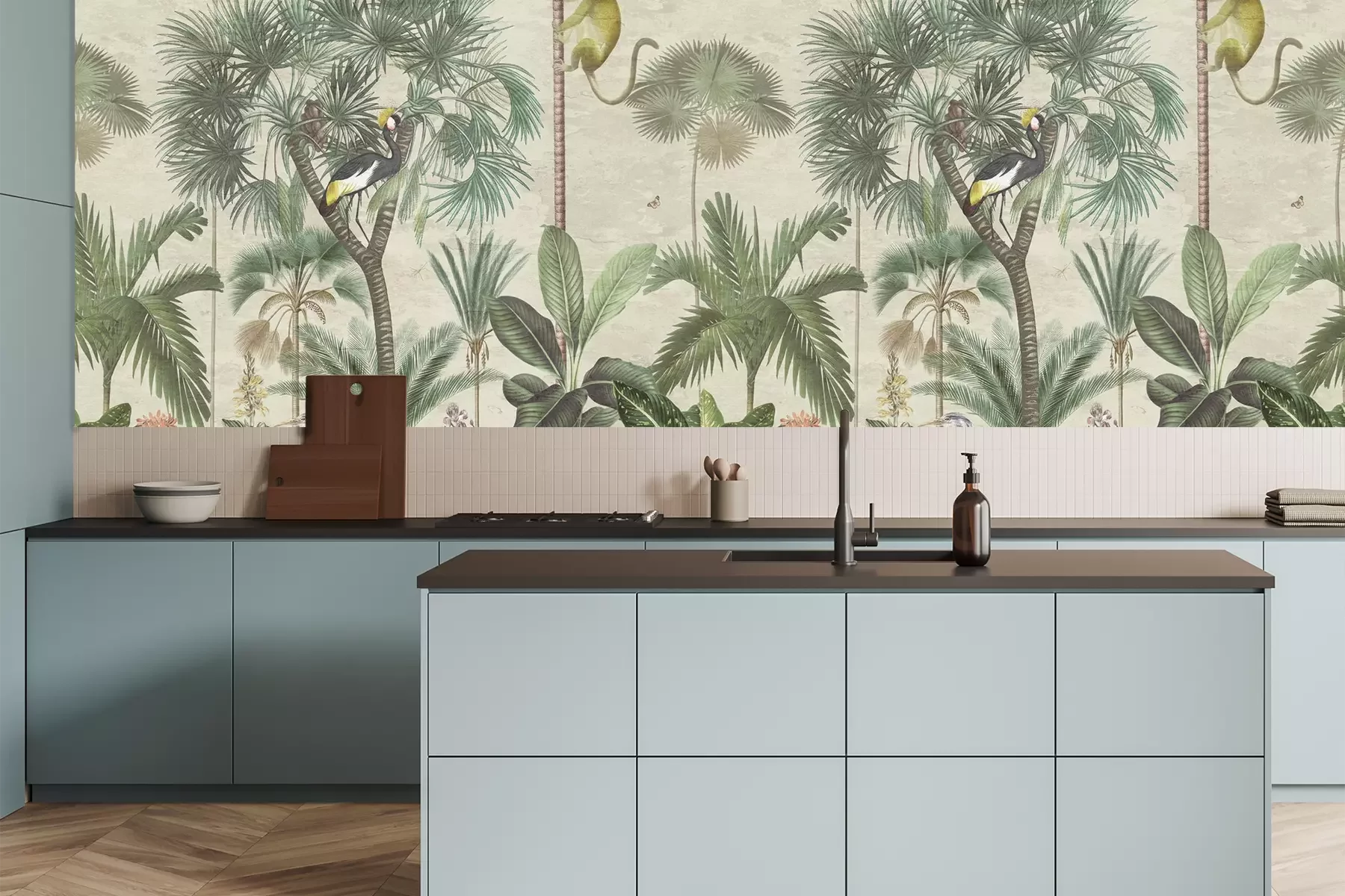Das Material Premium+ besteht aus einer strukturierten Vinyl-Oberschicht und einem Trägermaterial (Vlies) mit einer Grammatur von 255 g/m², das kleine Unebenheiten der Wand zuverlässig kaschiert. Die feine Sandstruktur verleiht der Oberfläche eine luxuriöse Haptik, während das halbmatte Finish die Tiefe der Farben betont. Das Material ist dampfdurchlässig – so kann diese Fototapete auch in Küchen und Badezimmern eingesetzt werden. Die maximale Breite einer Tapetenbahn beträgt 100 cm. Bei größeren Abmessungen besteht die Fototapete aus mehreren gleich großen Bahnen. Der Kleber wird direkt auf die Wand aufgetragen, und die Fototapete wird auf Stoß angebracht, was für einen ästhetischen Effekt ohne sichtbare Fugen sorgt. Die Oberfläche ist pflegeleicht und kann bei Bedarf sanft mit einem feuchten Tuch abgewischt werden.