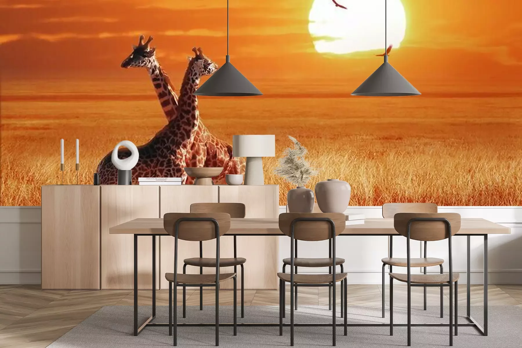 Afrikanische Tiere mit SonnenuntergangFototapete