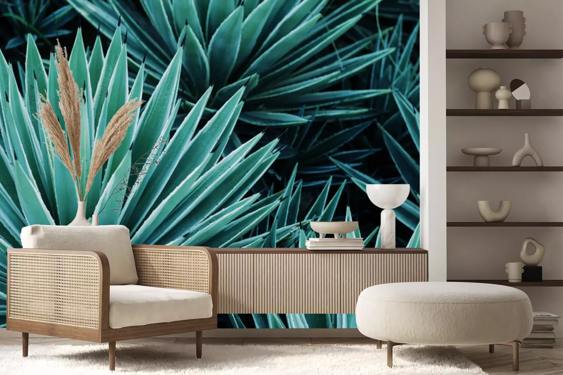 Das Material Premium+ besteht aus einer strukturierten Vinyl-Oberschicht und einem Trägermaterial (Vlies) mit einer Grammatur von 255 g/m², das kleine Unebenheiten der Wand zuverlässig kaschiert. Die feine Sandstruktur verleiht der Oberfläche eine luxuriöse Haptik, während das halbmatte Finish die Tiefe der Farben betont. Das Material ist dampfdurchlässig – so kann diese Fototapete auch in Küchen und Badezimmern eingesetzt werden. Die maximale Breite einer Tapetenbahn beträgt 100 cm. Bei größeren Abmessungen besteht die Fototapete aus mehreren gleich großen Bahnen. Der Kleber wird direkt auf die Wand aufgetragen, und die Fototapete wird auf Stoß angebracht, was für einen ästhetischen Effekt ohne sichtbare Fugen sorgt. Die Oberfläche ist pflegeleicht und kann bei Bedarf sanft mit einem feuchten Tuch abgewischt werden.
