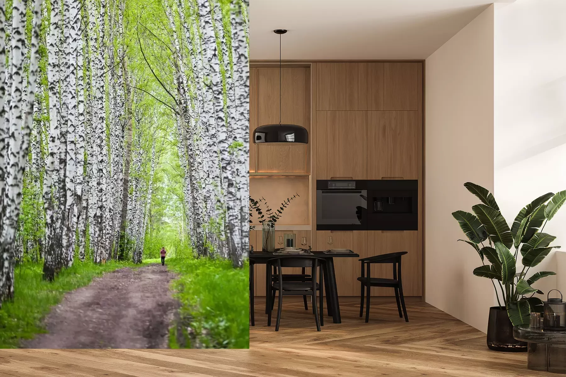 Das Material Premium+ besteht aus einer strukturierten Vinyl-Oberschicht und einem Trägermaterial (Vlies) mit einer Grammatur von 255 g/m², das kleine Unebenheiten der Wand zuverlässig kaschiert. Die feine Sandstruktur verleiht der Oberfläche eine luxuriöse Haptik, während das halbmatte Finish die Tiefe der Farben betont. Das Material ist dampfdurchlässig – so kann diese Fototapete auch in Küchen und Badezimmern eingesetzt werden. Die maximale Breite einer Tapetenbahn beträgt 100 cm. Bei größeren Abmessungen besteht die Fototapete aus mehreren gleich großen Bahnen. Der Kleber wird direkt auf die Wand aufgetragen, und die Fototapete wird auf Stoß angebracht, was für einen ästhetischen Effekt ohne sichtbare Fugen sorgt. Die Oberfläche ist pflegeleicht und kann bei Bedarf sanft mit einem feuchten Tuch abgewischt werden.