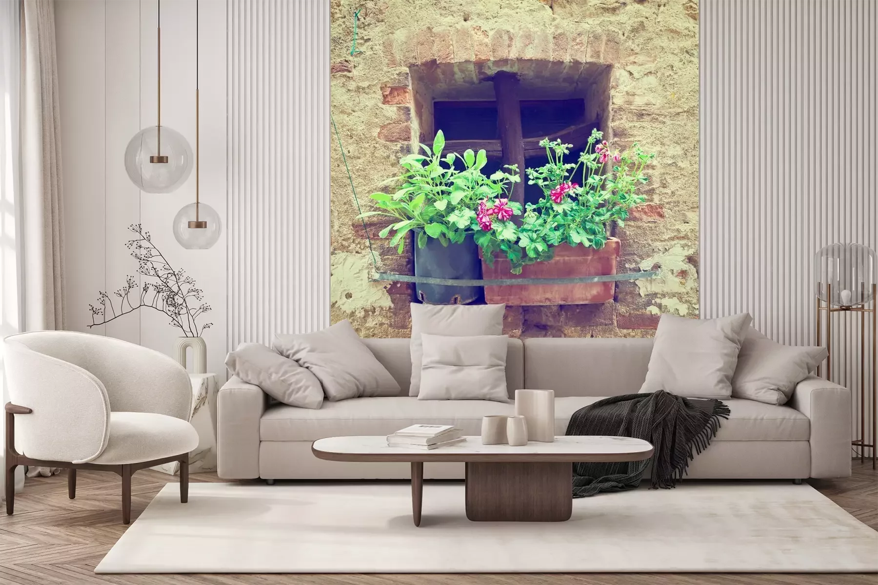 Das Material Standard ist ein hochwertiges Latexmaterial mit einer glatten, matten Oberfläche. Durch den Einsatz von HP-Latex-Drucktechnologie sind die Farben satt, langlebig und UV-beständig. So bleibt das Muster über Jahre hinweg makellos schön. Die verschmutzte Oberfläche dieses Materials kann sanft mit einem trockenen Tuch abgewischt werden. Die maximale Breite einer einzelnen Bahn beträgt 95 cm oder 105 cm – je nach Breite der bestellten Fototapete. Bei Fototapeten mit größeren Abmessungen besteht der Ausdruck aus mehreren gleich großen Tapetenbahnen. Die Fototapete wird auf Stoß angebracht, wodurch die Fugen nahezu unsichtbar sind.