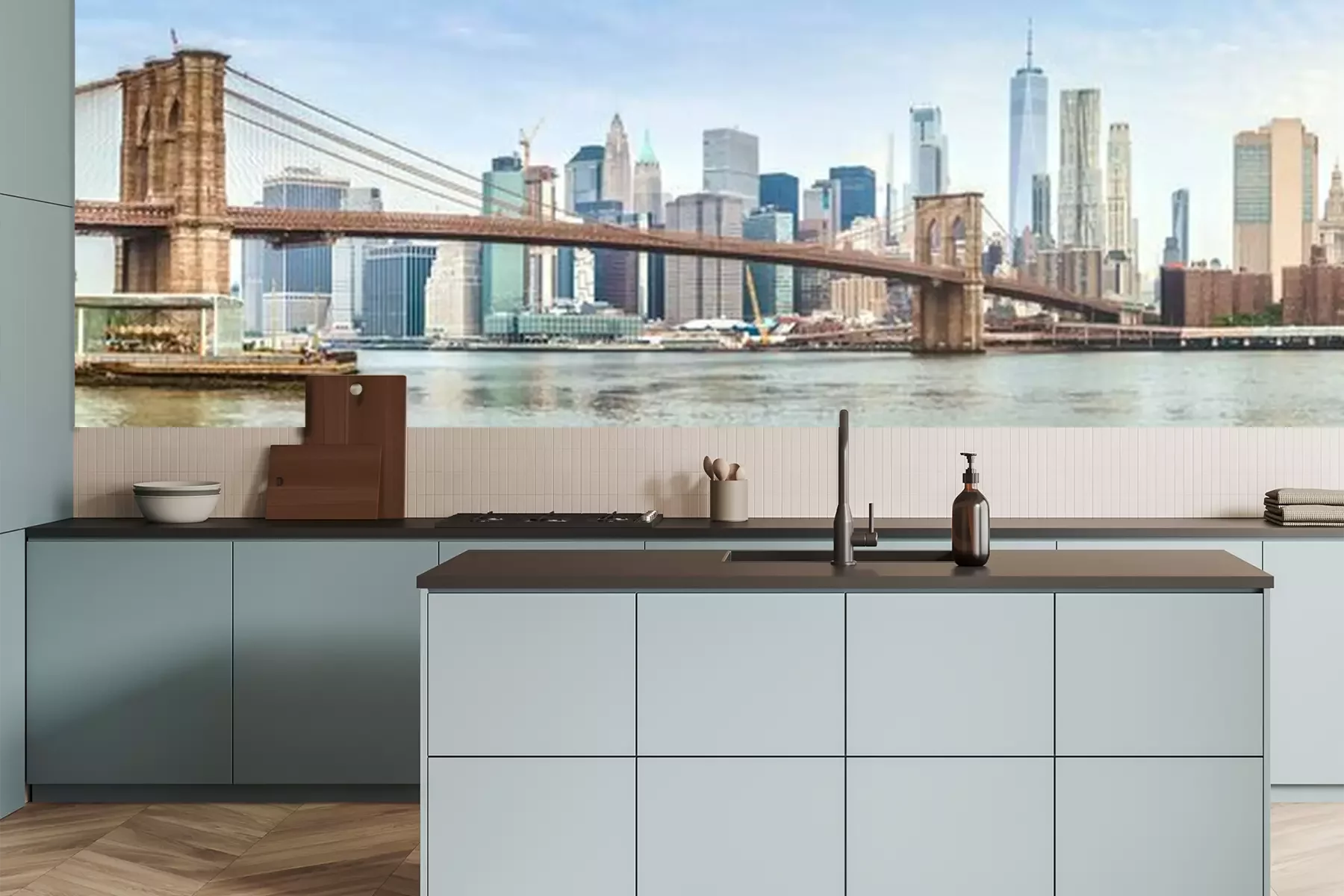 Fototapete Amazing panorama view of New York city and Brooklyn bridge