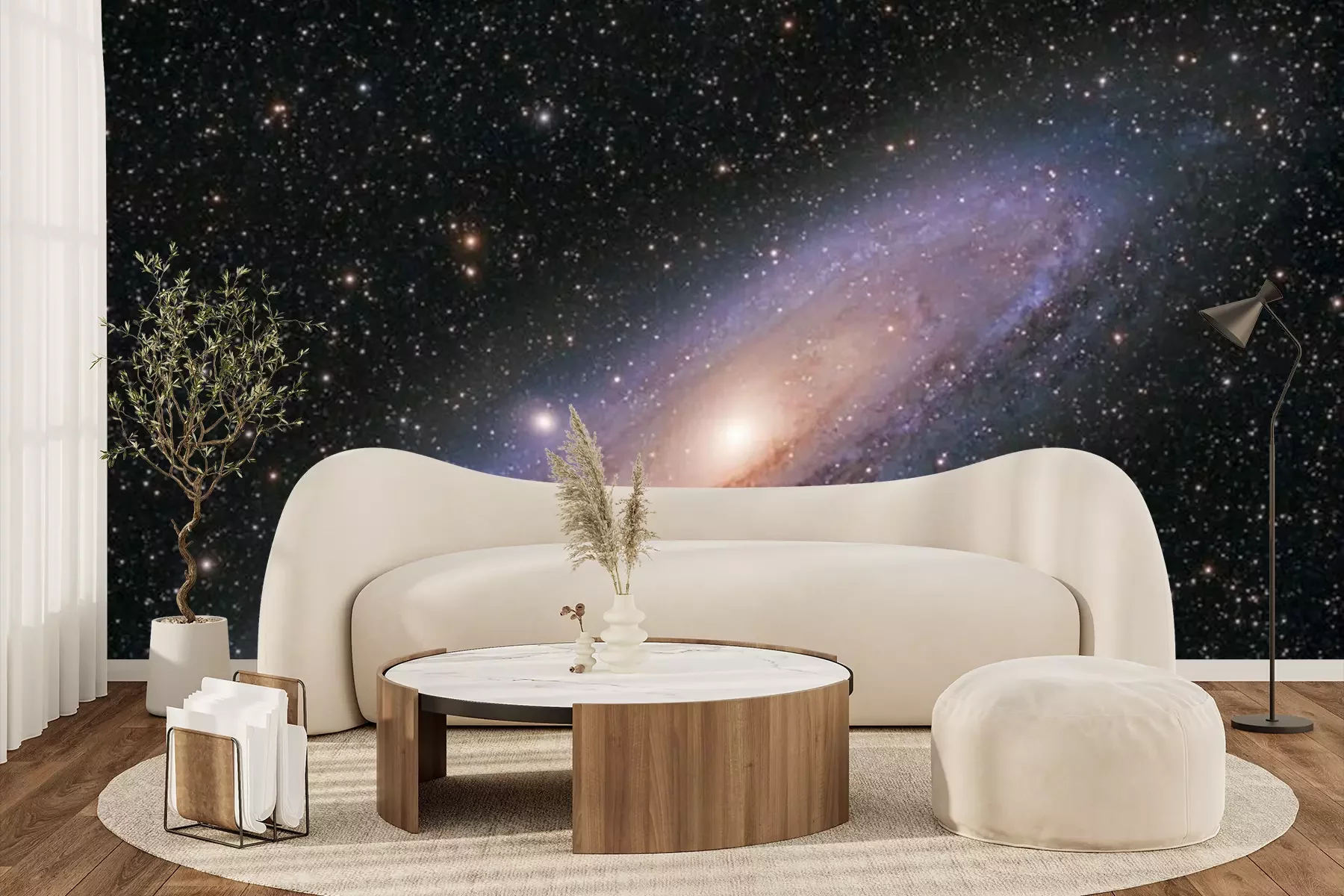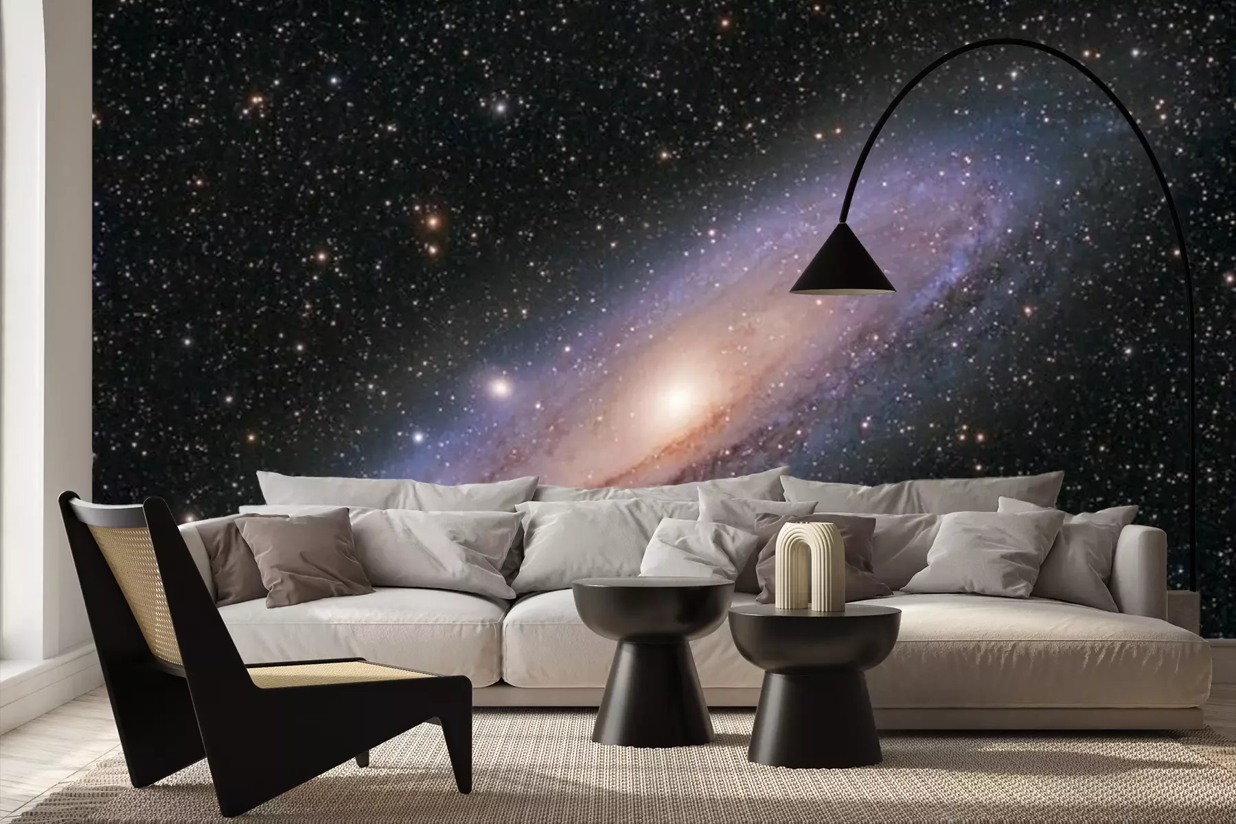 Das Material Premium+ besteht aus einer strukturierten Vinyl-Oberschicht und einem Trägermaterial (Vlies) mit einer Grammatur von 255 g/m², das kleine Unebenheiten der Wand zuverlässig kaschiert. Die feine Sandstruktur verleiht der Oberfläche eine luxuriöse Haptik, während das halbmatte Finish die Tiefe der Farben betont. Das Material ist dampfdurchlässig – so kann diese Fototapete auch in Küchen und Badezimmern eingesetzt werden. Die maximale Breite einer Tapetenbahn beträgt 100 cm. Bei größeren Abmessungen besteht die Fototapete aus mehreren gleich großen Bahnen. Der Kleber wird direkt auf die Wand aufgetragen, und die Fototapete wird auf Stoß angebracht, was für einen ästhetischen Effekt ohne sichtbare Fugen sorgt. Die Oberfläche ist pflegeleicht und kann bei Bedarf sanft mit einem feuchten Tuch abgewischt werden.