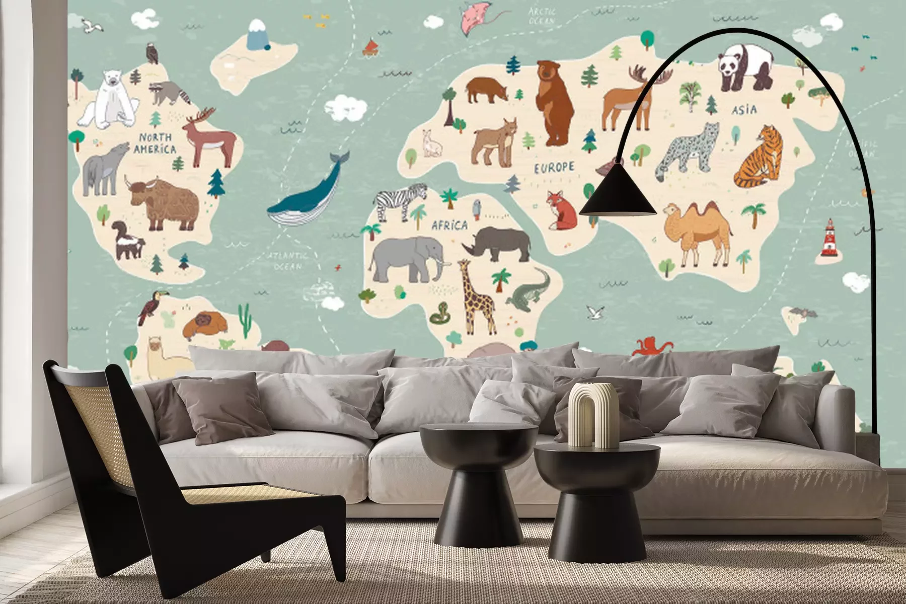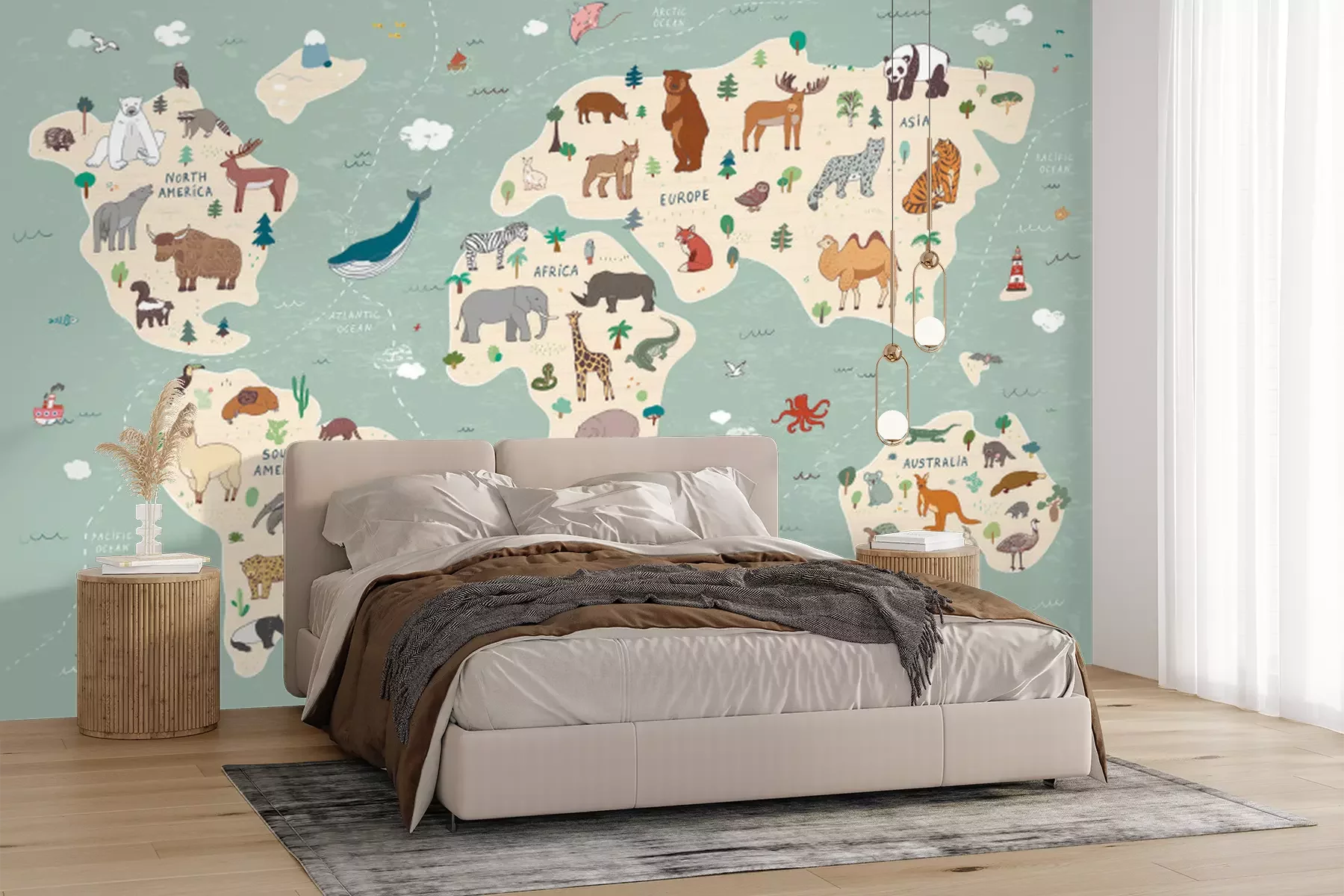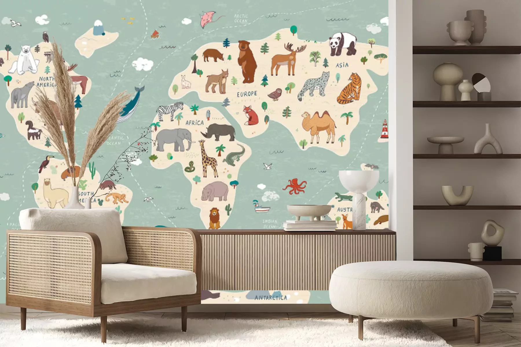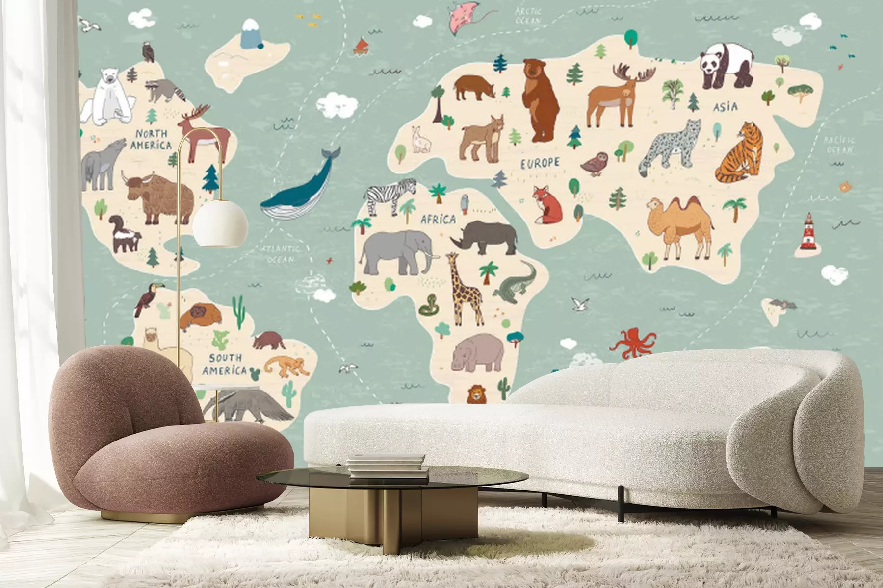 Fototapete Animals vector hand drawn world map