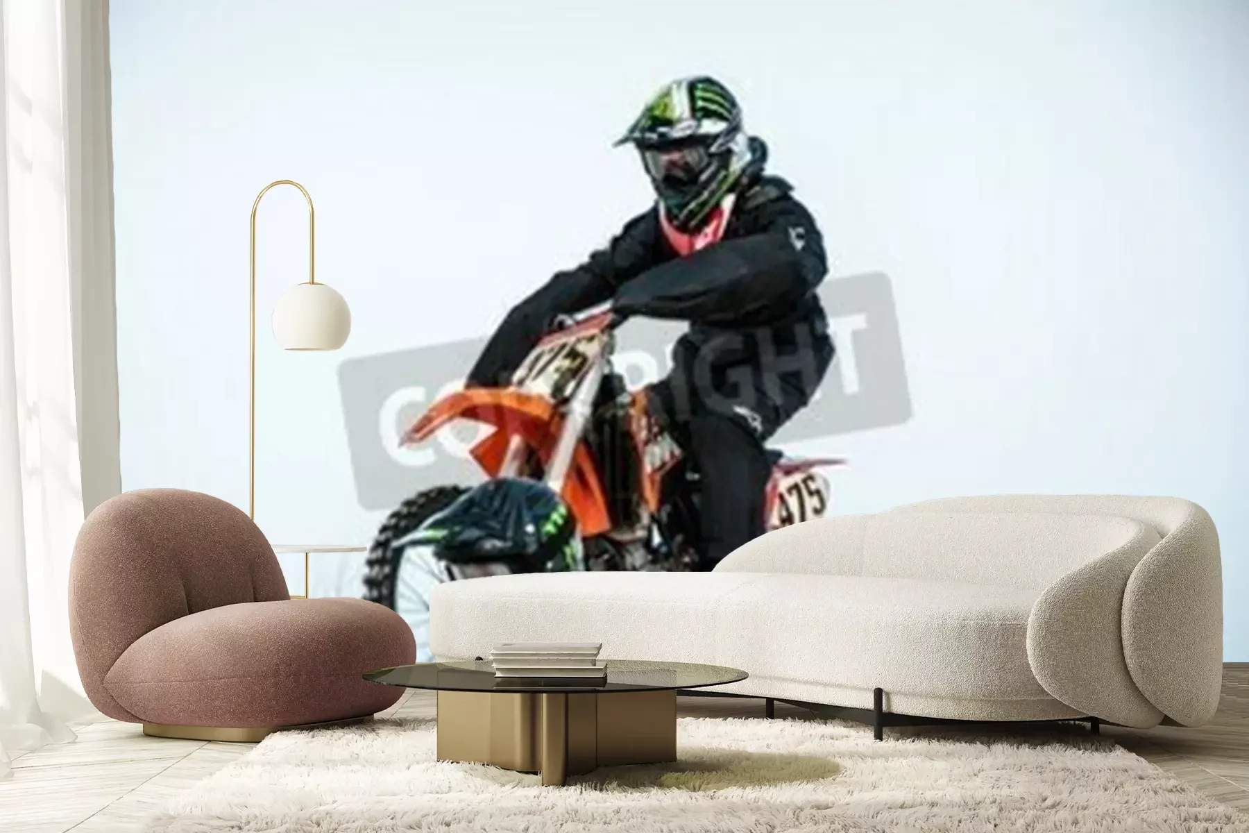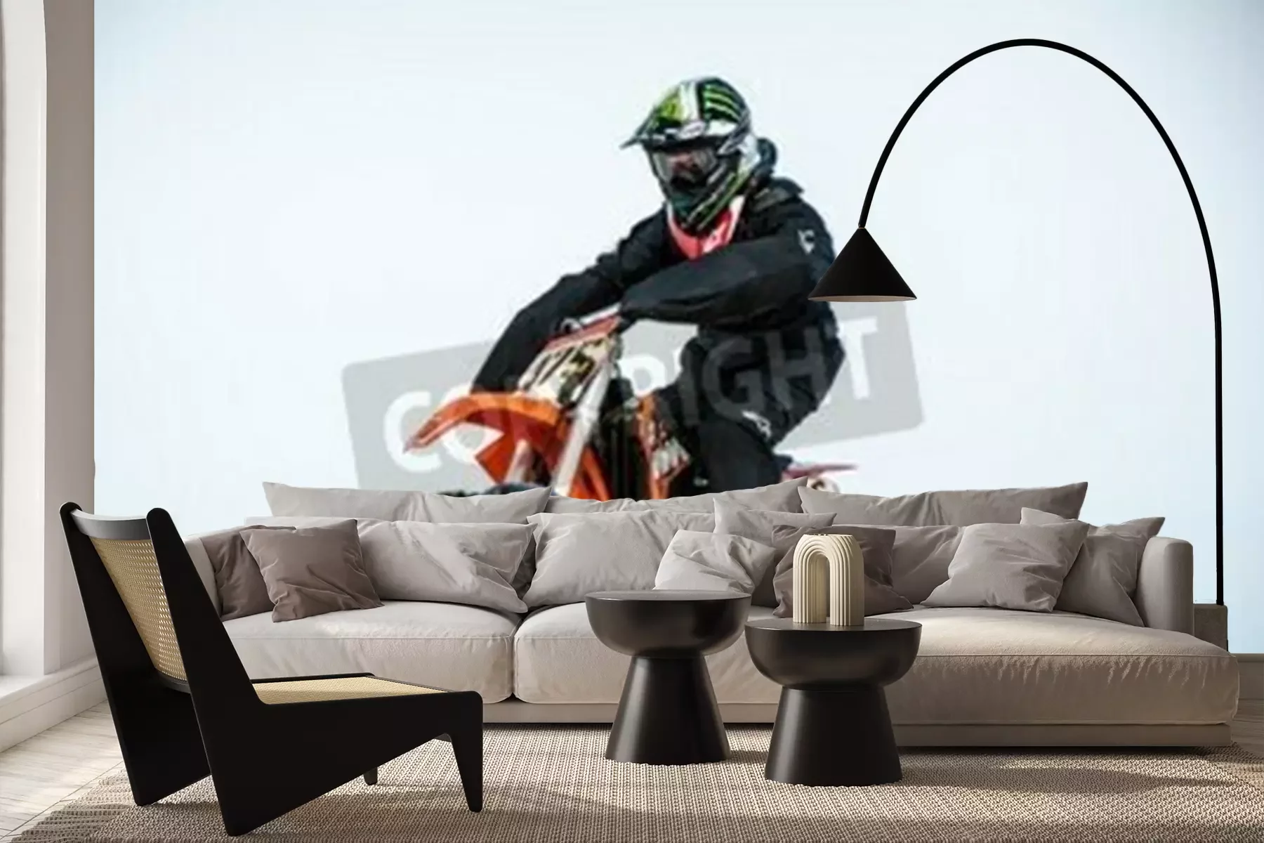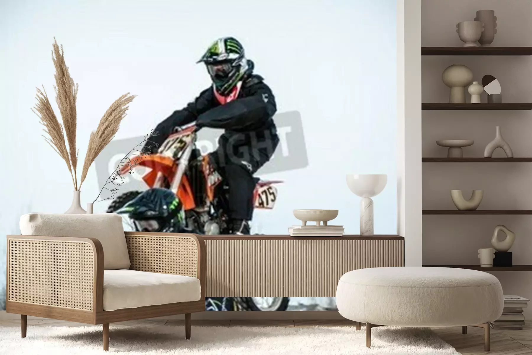 Fototapete Ansicht eines Geländemotorrads mit einem Motorradfahrer