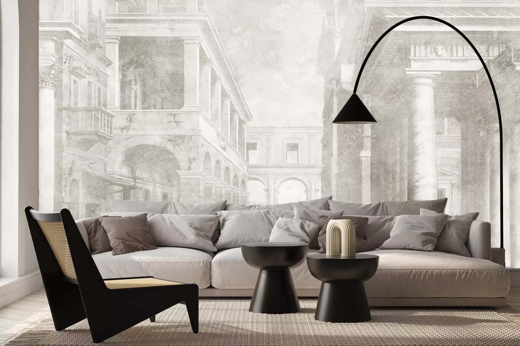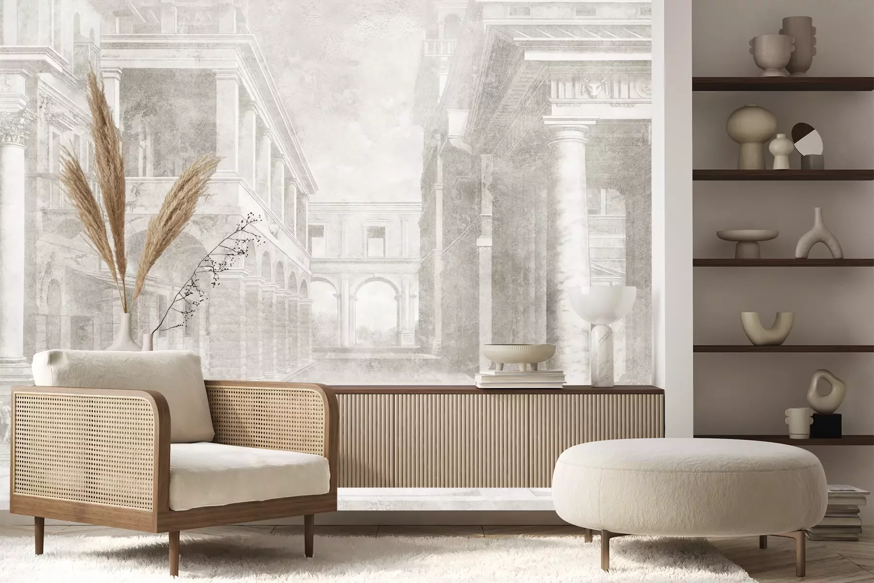 Das Material Premium+ besteht aus einer strukturierten Vinyl-Oberschicht und einem Trägermaterial (Vlies) mit einer Grammatur von 255 g/m², das kleine Unebenheiten der Wand zuverlässig kaschiert. Die feine Sandstruktur verleiht der Oberfläche eine luxuriöse Haptik, während das halbmatte Finish die Tiefe der Farben betont. Das Material ist dampfdurchlässig – so kann diese Fototapete auch in Küchen und Badezimmern eingesetzt werden. Die maximale Breite einer Tapetenbahn beträgt 100 cm. Bei größeren Abmessungen besteht die Fototapete aus mehreren gleich großen Bahnen. Der Kleber wird direkt auf die Wand aufgetragen, und die Fototapete wird auf Stoß angebracht, was für einen ästhetischen Effekt ohne sichtbare Fugen sorgt. Die Oberfläche ist pflegeleicht und kann bei Bedarf sanft mit einem feuchten Tuch abgewischt werden.
