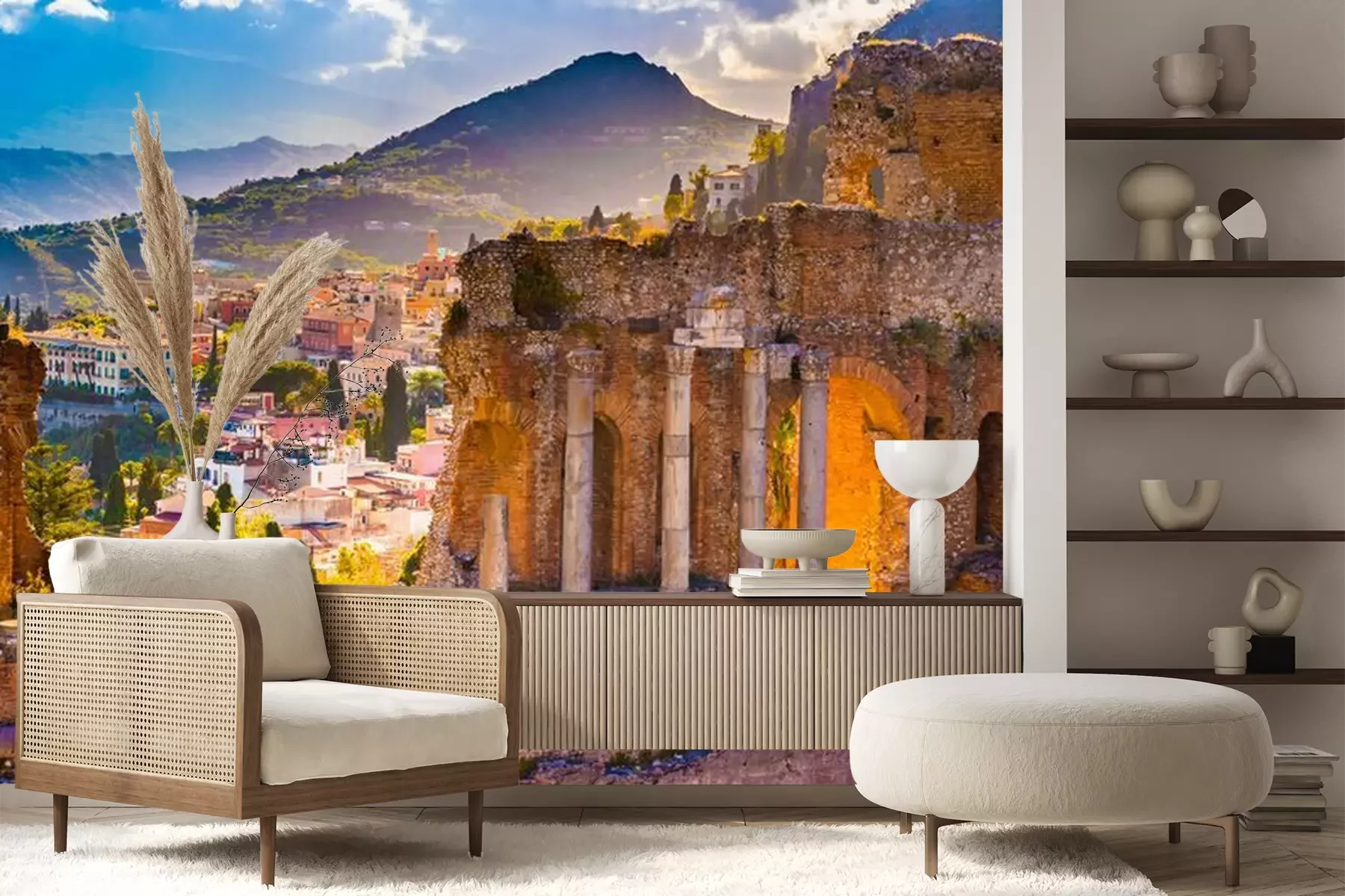 Das Material Premium+ besteht aus einer strukturierten Vinyl-Oberschicht und einem Trägermaterial (Vlies) mit einer Grammatur von 255 g/m², das kleine Unebenheiten der Wand zuverlässig kaschiert. Die feine Sandstruktur verleiht der Oberfläche eine luxuriöse Haptik, während das halbmatte Finish die Tiefe der Farben betont. Das Material ist dampfdurchlässig – so kann diese Fototapete auch in Küchen und Badezimmern eingesetzt werden. Die maximale Breite einer Tapetenbahn beträgt 100 cm. Bei größeren Abmessungen besteht die Fototapete aus mehreren gleich großen Bahnen. Der Kleber wird direkt auf die Wand aufgetragen, und die Fototapete wird auf Stoß angebracht, was für einen ästhetischen Effekt ohne sichtbare Fugen sorgt. Die Oberfläche ist pflegeleicht und kann bei Bedarf sanft mit einem feuchten Tuch abgewischt werden.