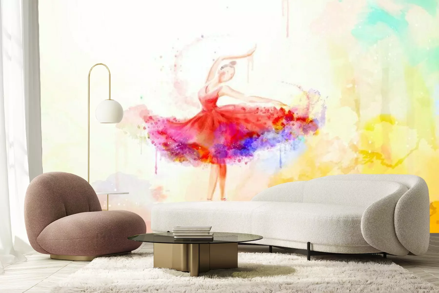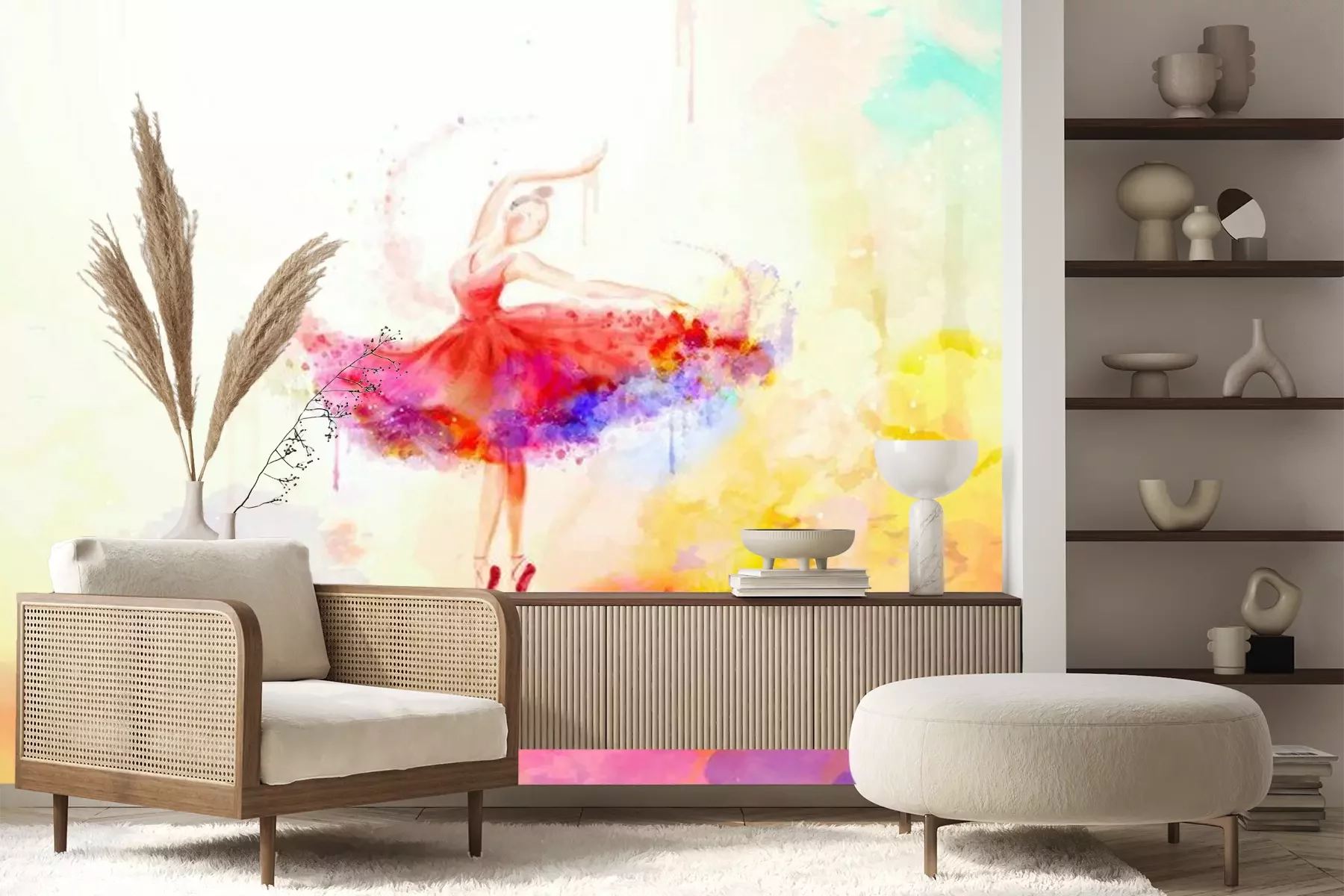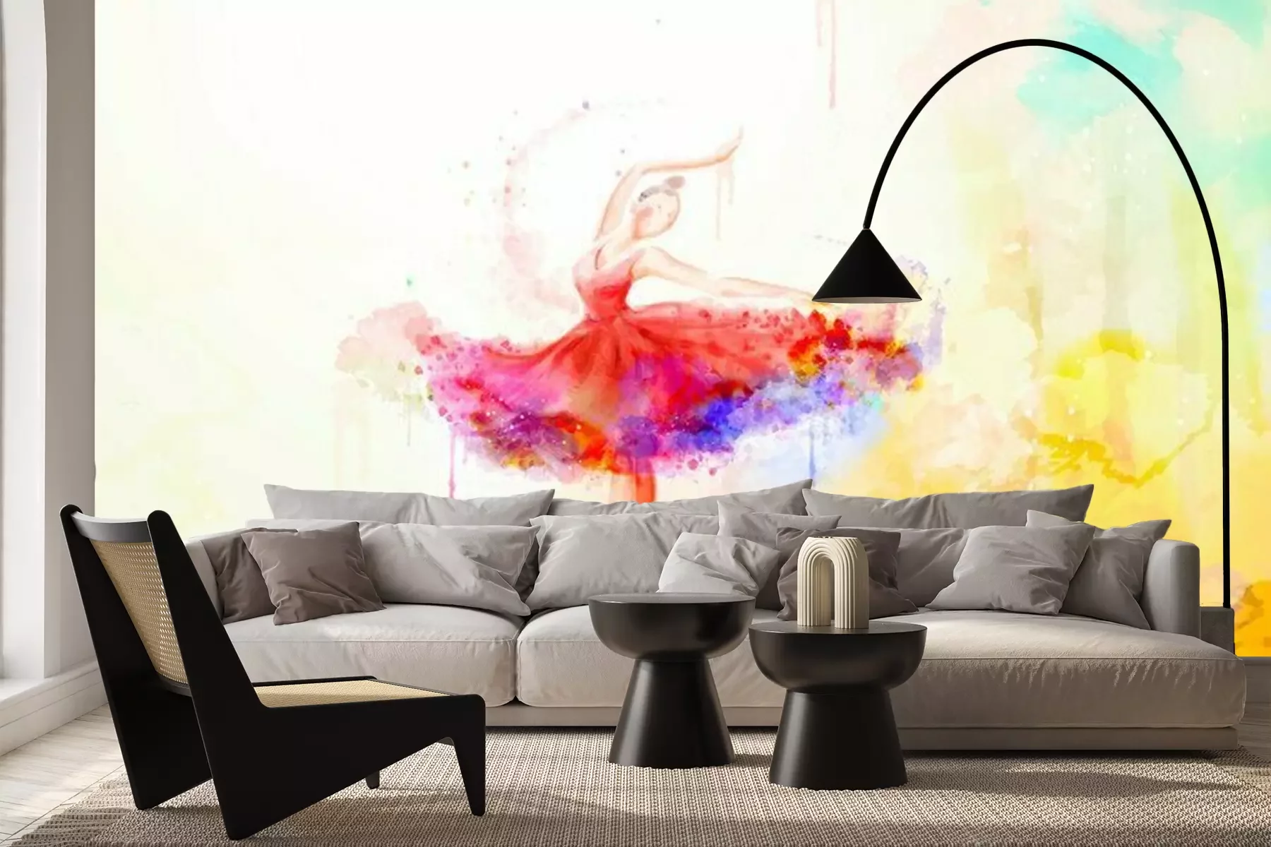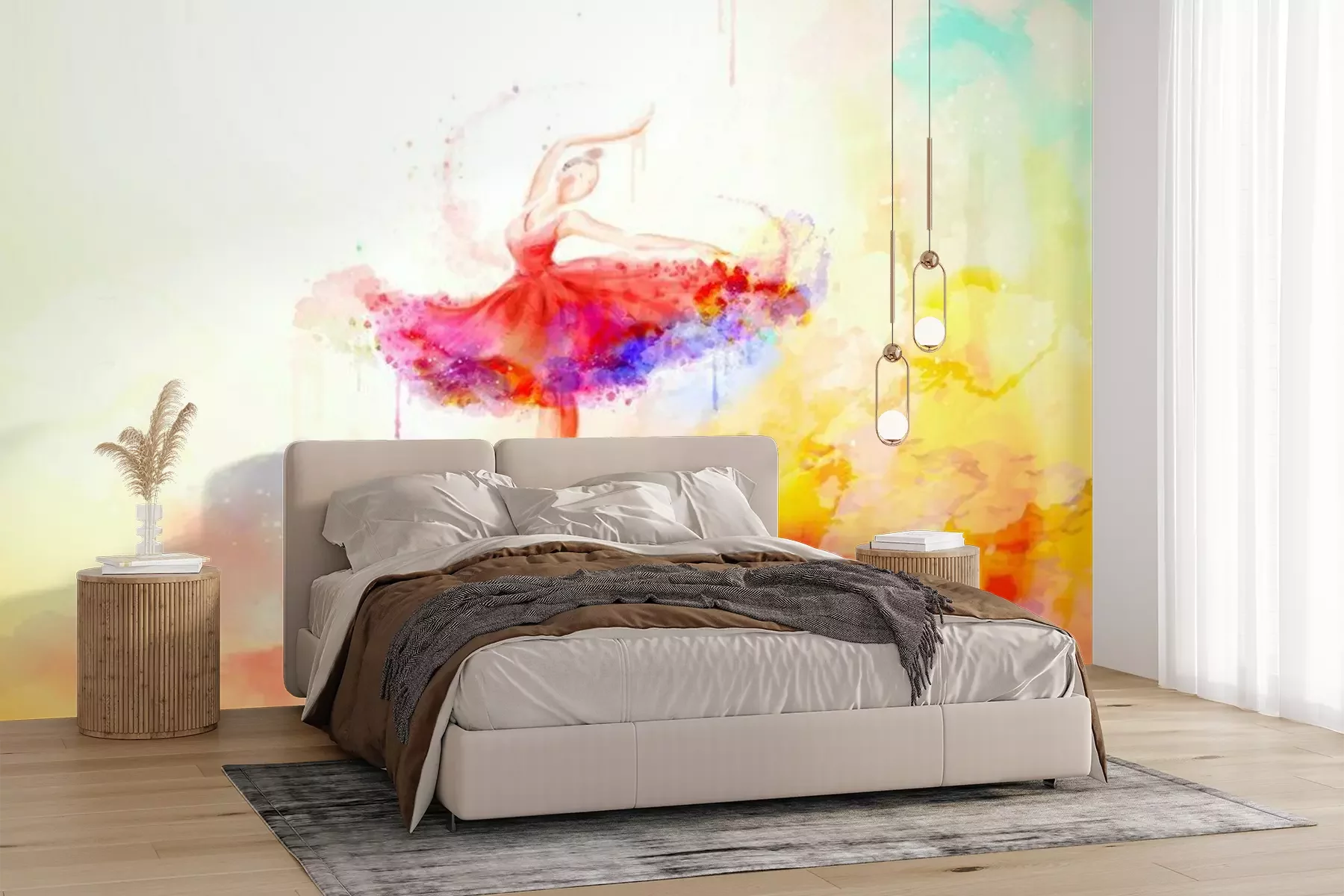 Fototapete Aquarell Ballerina auf einem bunten Hintergrund