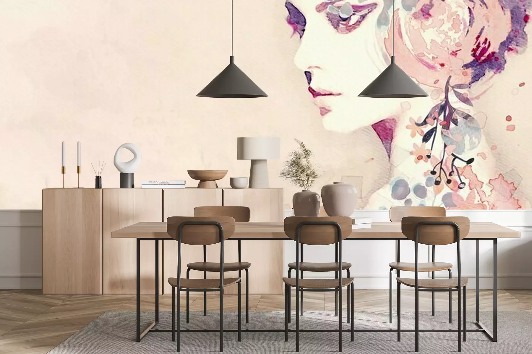 Das Material Premium+ besteht aus einer strukturierten Vinyl-Oberschicht und einem Trägermaterial (Vlies) mit einer Grammatur von 255 g/m², das kleine Unebenheiten der Wand zuverlässig kaschiert. Die feine Sandstruktur verleiht der Oberfläche eine luxuriöse Haptik, während das halbmatte Finish die Tiefe der Farben betont. Das Material ist dampfdurchlässig – so kann diese Fototapete auch in Küchen und Badezimmern eingesetzt werden. Die maximale Breite einer Tapetenbahn beträgt 100 cm. Bei größeren Abmessungen besteht die Fototapete aus mehreren gleich großen Bahnen. Der Kleber wird direkt auf die Wand aufgetragen, und die Fototapete wird auf Stoß angebracht, was für einen ästhetischen Effekt ohne sichtbare Fugen sorgt. Die Oberfläche ist pflegeleicht und kann bei Bedarf sanft mit einem feuchten Tuch abgewischt werden.