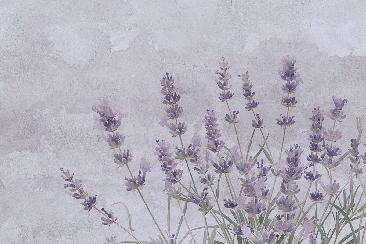 Fototapete: Aquarell-Lavendelblumen auf Beton