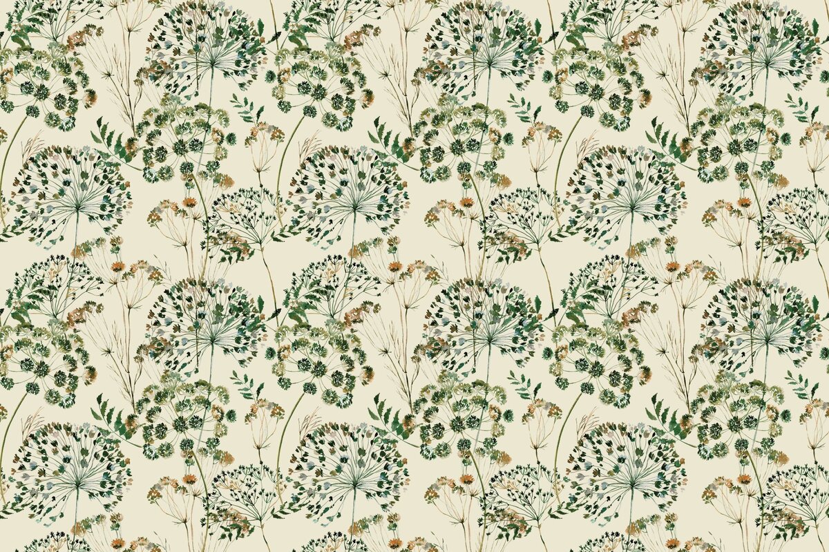 Fototapete: Aquarell-Löwenzahn und Wildblumen, zartes Pflanzenmotiv auf hellem Hintergrund