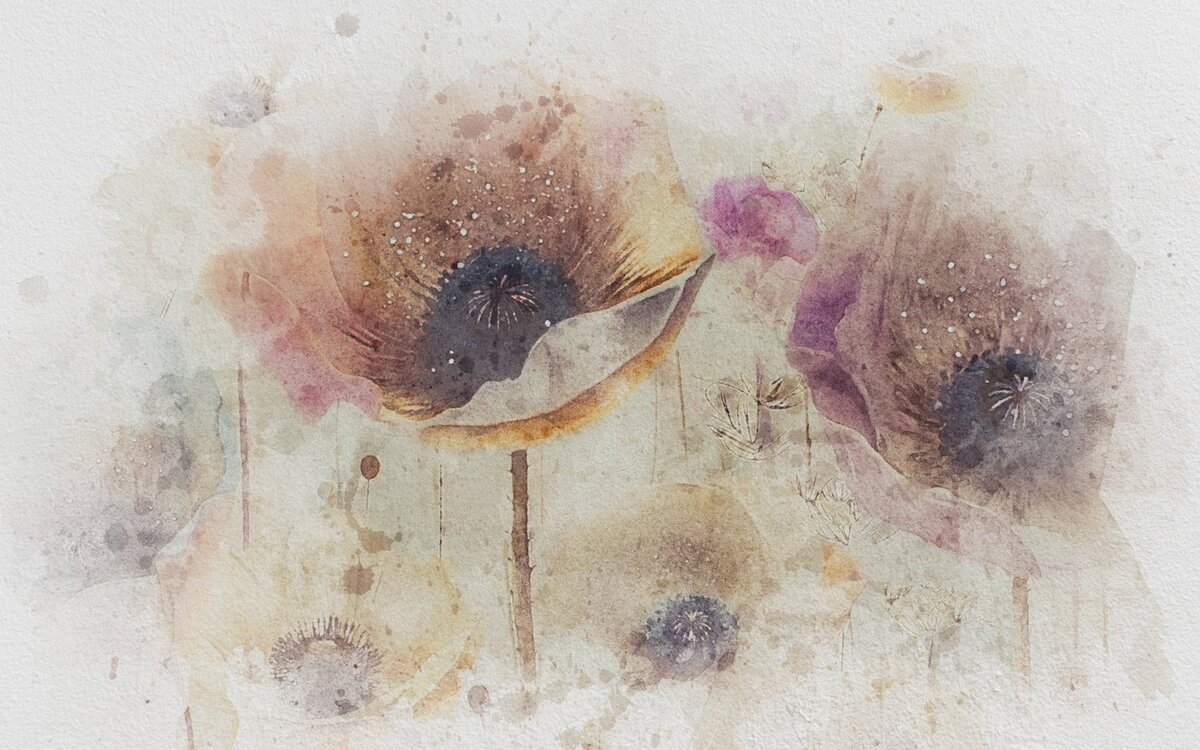 Fototapete: Aquarell-Mohnblumen auf Betonhintergrund
