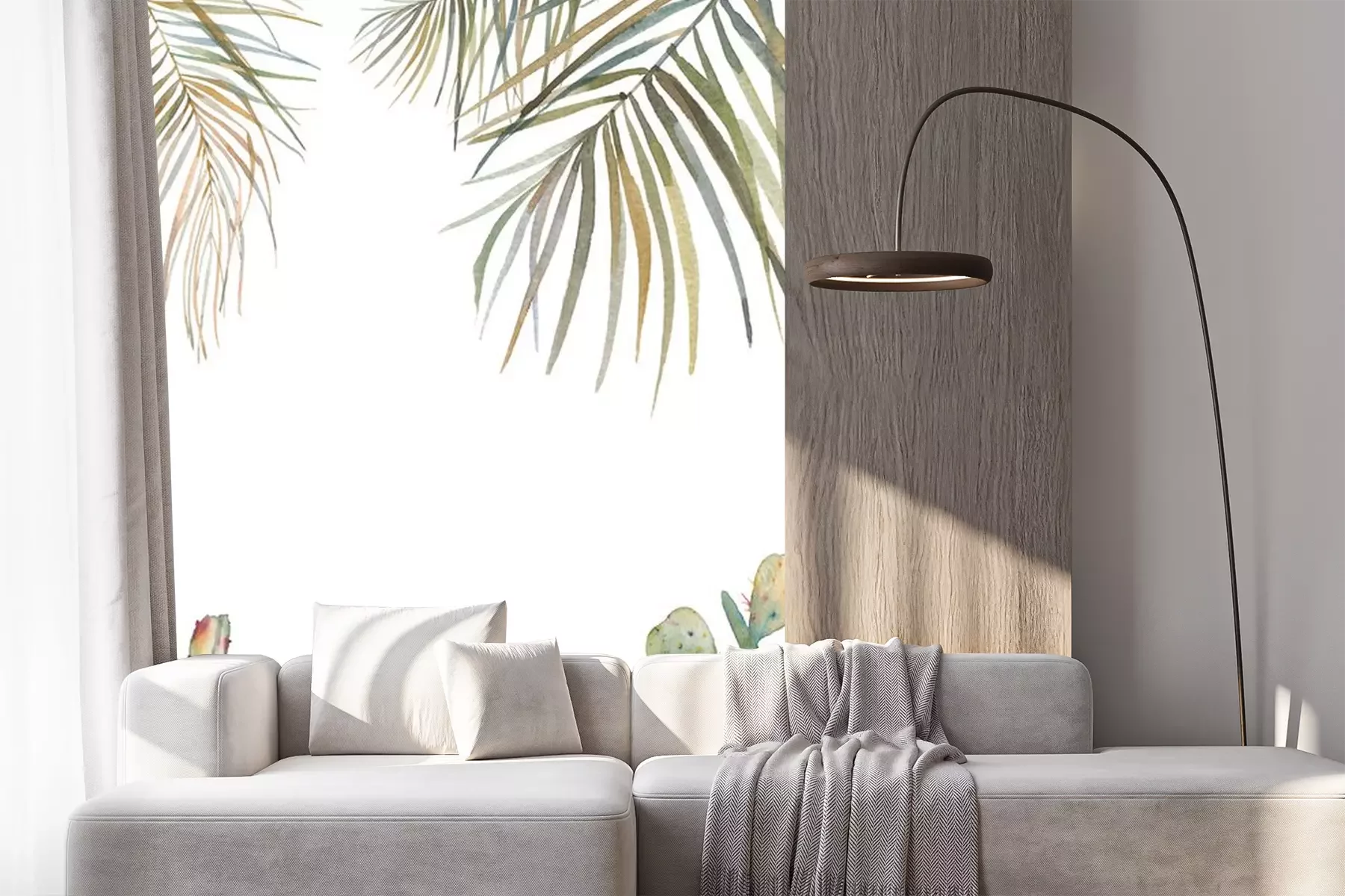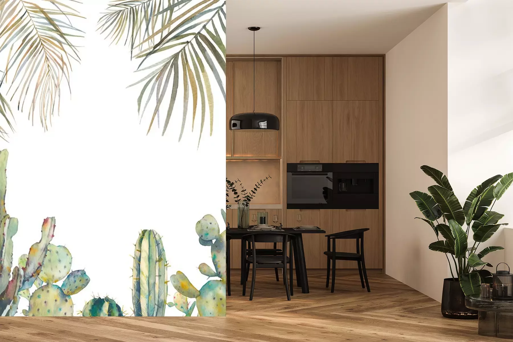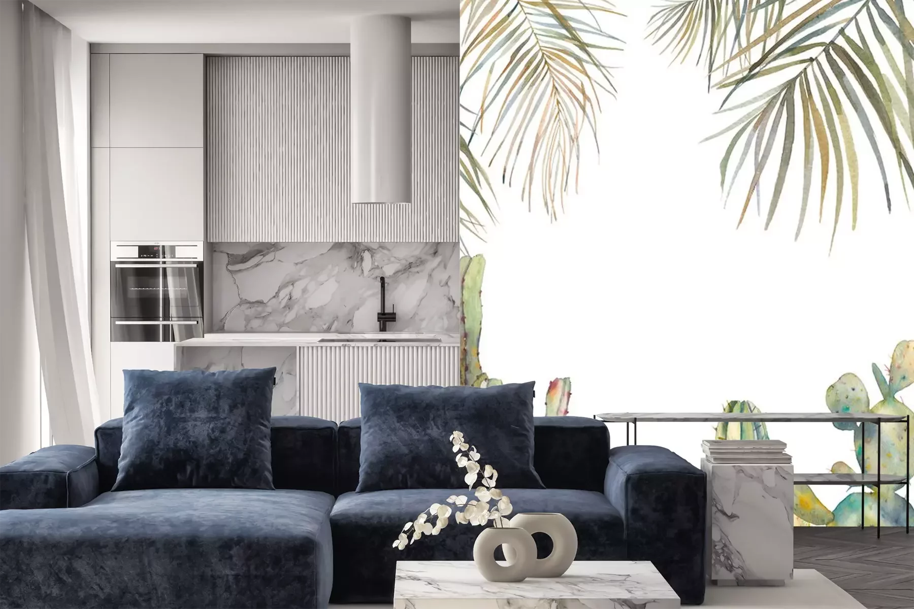 Fototapete Aquarell-Palmenblätter und Kakteen