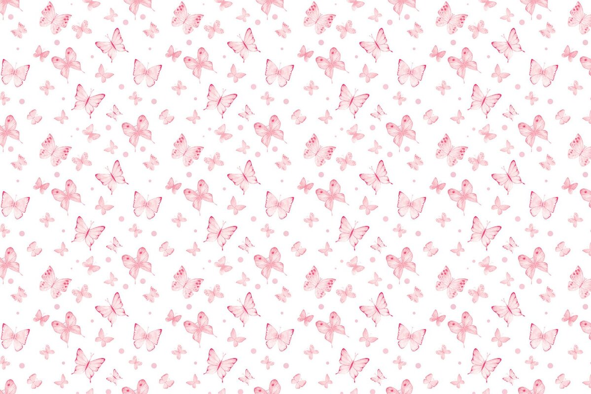 Fototapete: Aquarell-Schmetterlinge und Punkte auf weißem Hintergrund, zartes Kindermuster