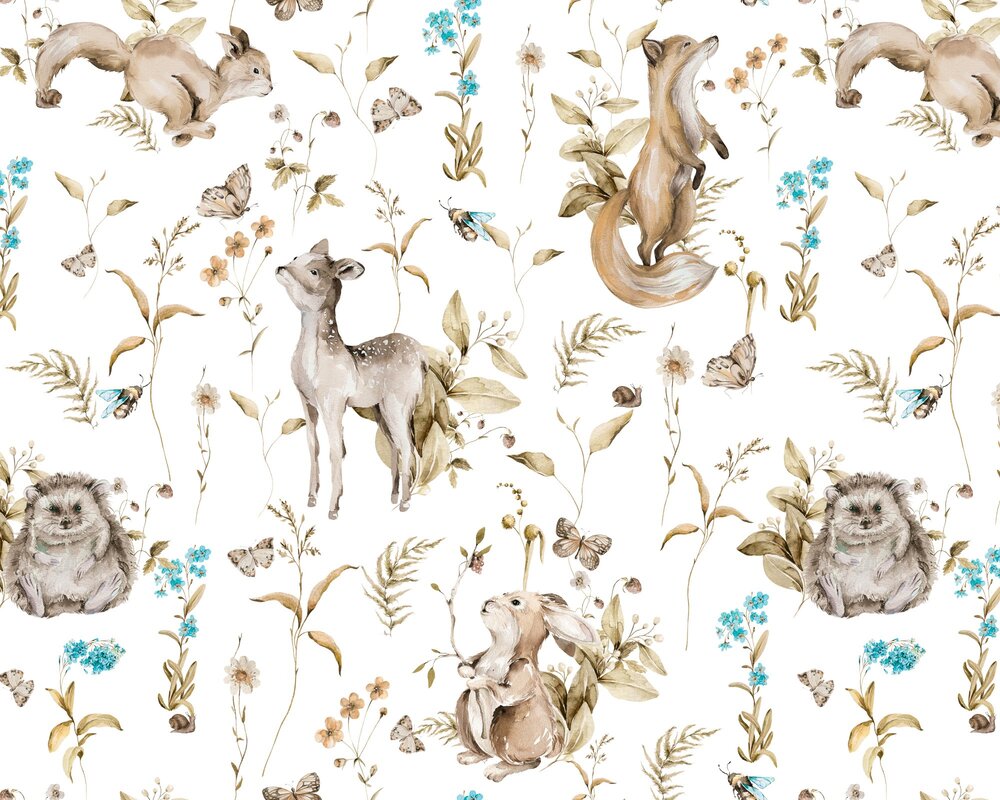 Fototapete: Aquarell Waldtiere und Pflanzen auf weißem Hintergrund