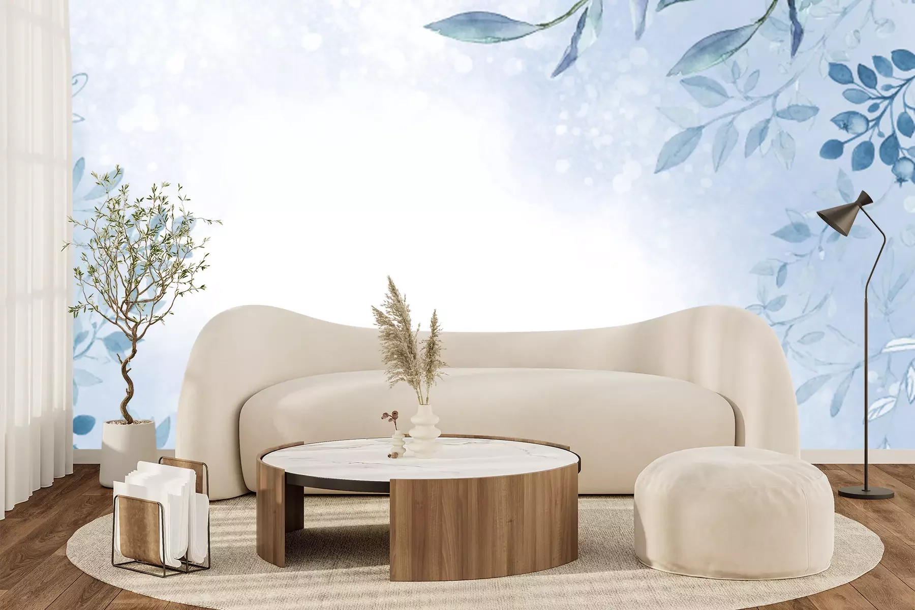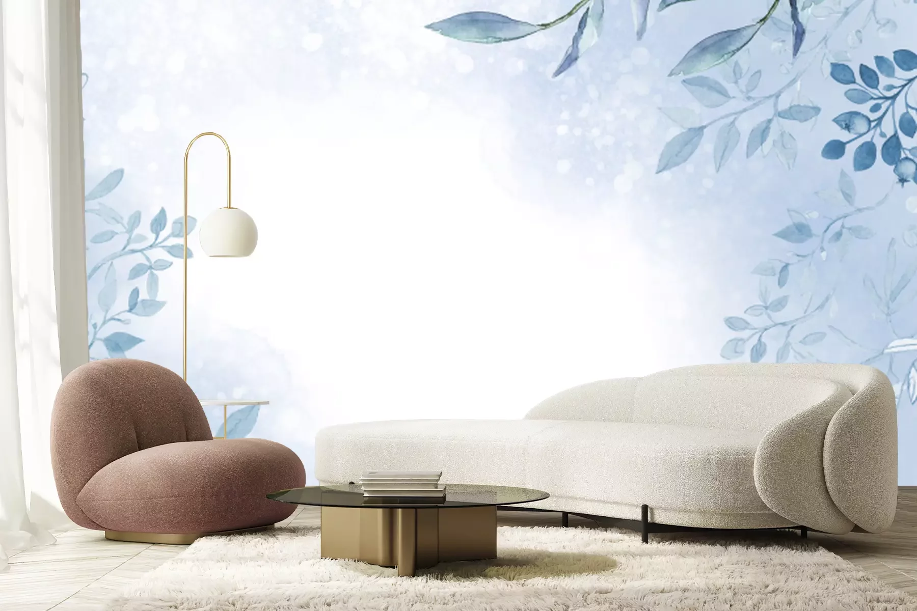 Fototapete Aquarellblätter auf hellem Hintergrund