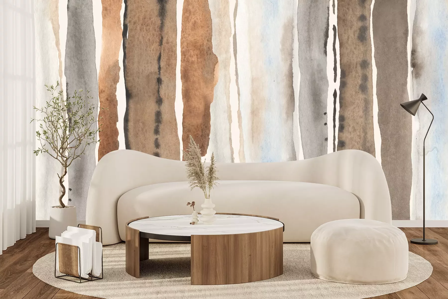 Die Fototapeten werden in Bahnen geliefert. Die Größe und die Anzahl der Bahnen, aus denen die gesamte Fototapete besteht, hängen vom gewählten Material ab. Wenn die Größe die maximale Breite des Materials überschreitet, besteht der Ausdruck aus mehreren gleich großen Bahnen.