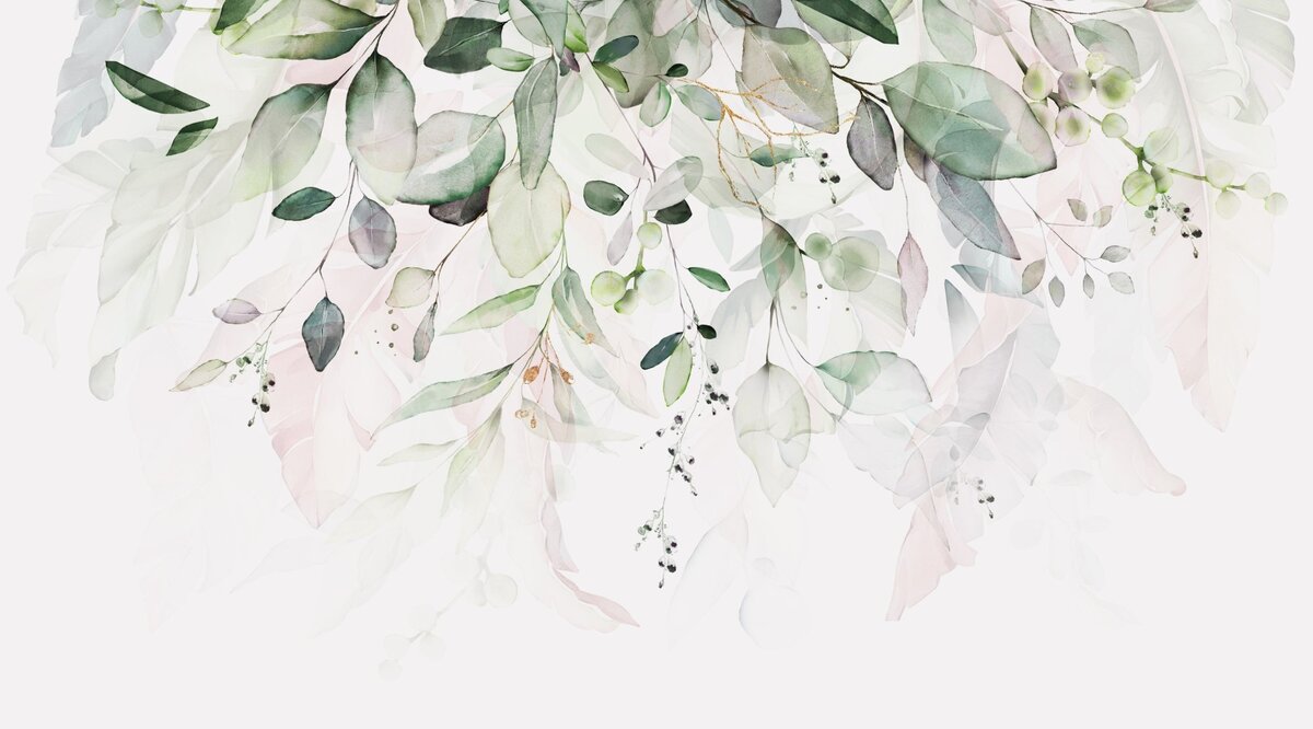 Fototapete: Aquarellzweige und Blätter auf weißem Hintergrund