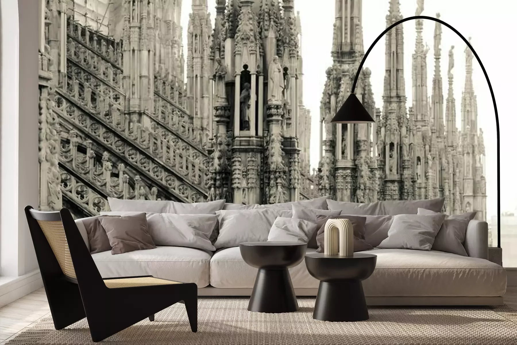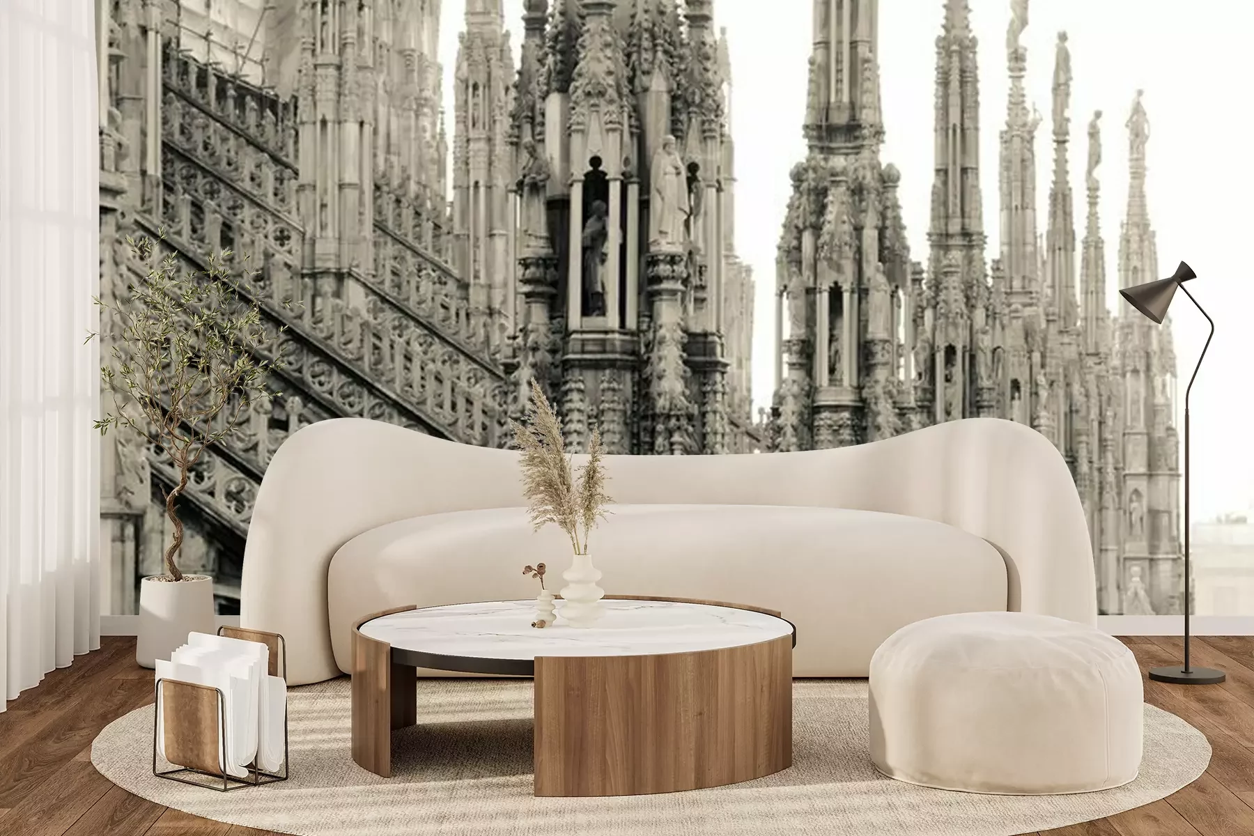 Das Material Premium+ besteht aus einer strukturierten Vinyl-Oberschicht und einem Trägermaterial (Vlies) mit einer Grammatur von 255 g/m², das kleine Unebenheiten der Wand zuverlässig kaschiert. Die feine Sandstruktur verleiht der Oberfläche eine luxuriöse Haptik, während das halbmatte Finish die Tiefe der Farben betont. Das Material ist dampfdurchlässig – so kann diese Fototapete auch in Küchen und Badezimmern eingesetzt werden. Die maximale Breite einer Tapetenbahn beträgt 100 cm. Bei größeren Abmessungen besteht die Fototapete aus mehreren gleich großen Bahnen. Der Kleber wird direkt auf die Wand aufgetragen, und die Fototapete wird auf Stoß angebracht, was für einen ästhetischen Effekt ohne sichtbare Fugen sorgt. Die Oberfläche ist pflegeleicht und kann bei Bedarf sanft mit einem feuchten Tuch abgewischt werden.