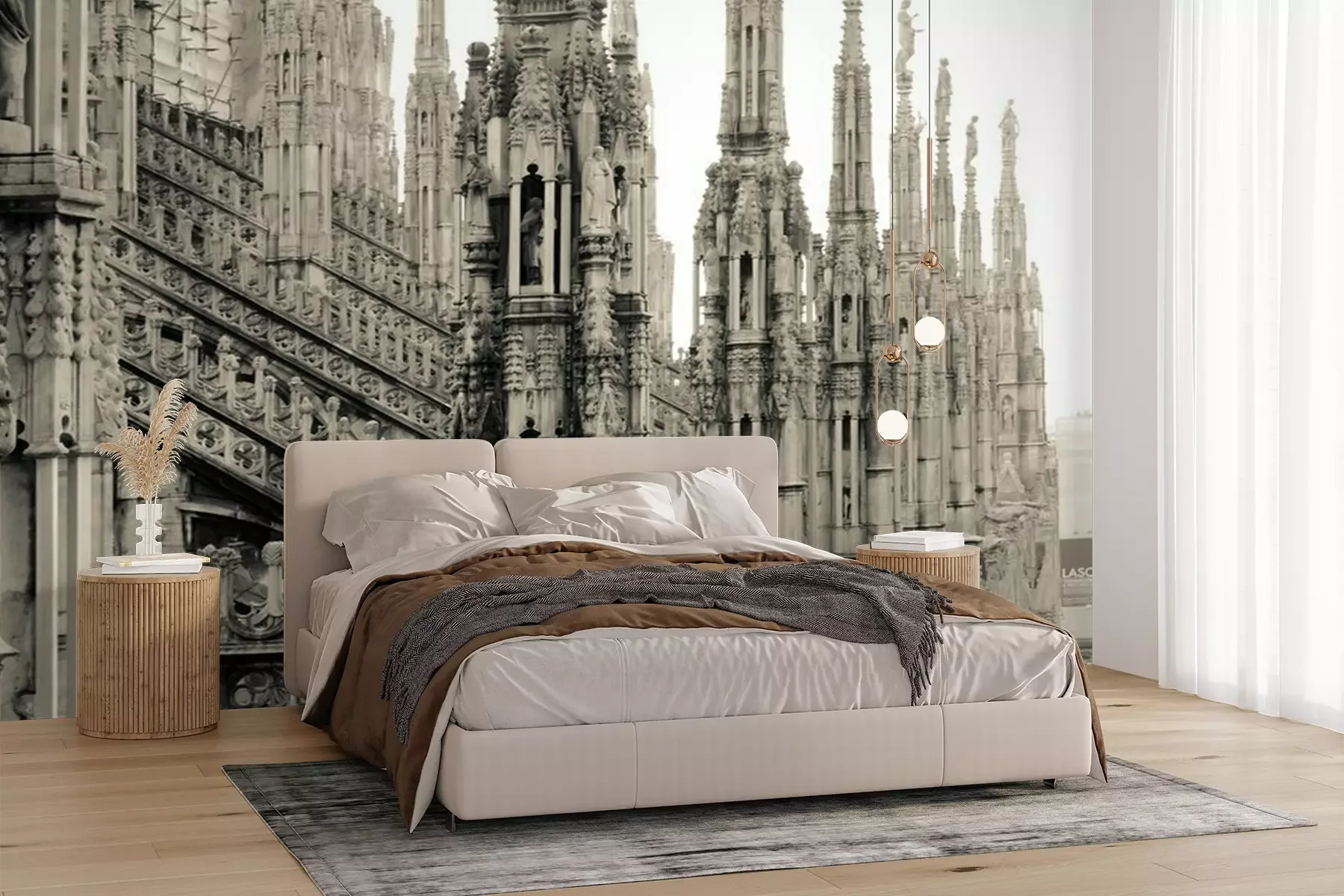 Die Fototapeten werden in Bahnen geliefert. Die Größe und die Anzahl der Bahnen, aus denen die gesamte Fototapete besteht, hängen vom gewählten Material ab. Wenn die Größe die maximale Breite des Materials überschreitet, besteht der Ausdruck aus mehreren gleich großen Bahnen.
