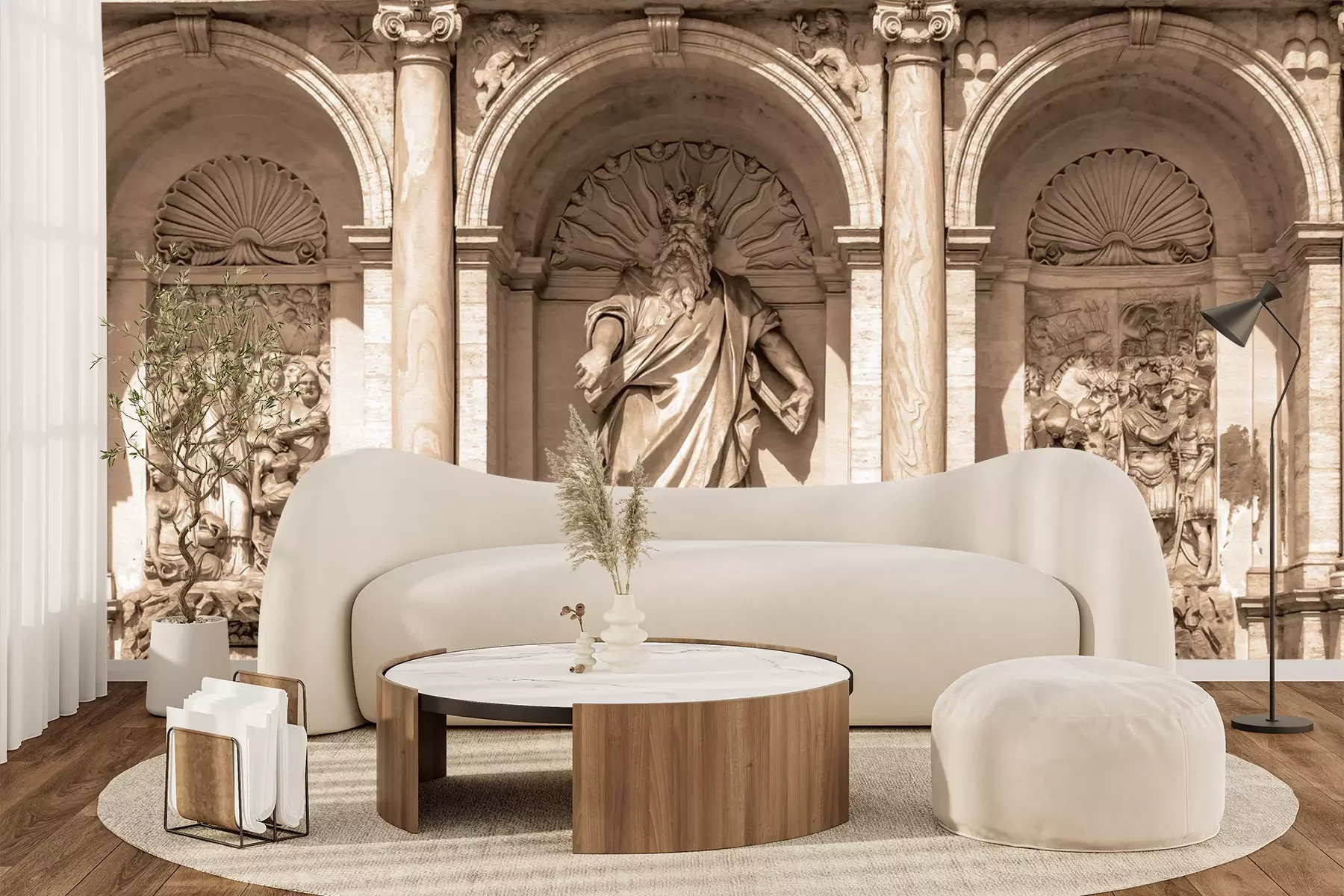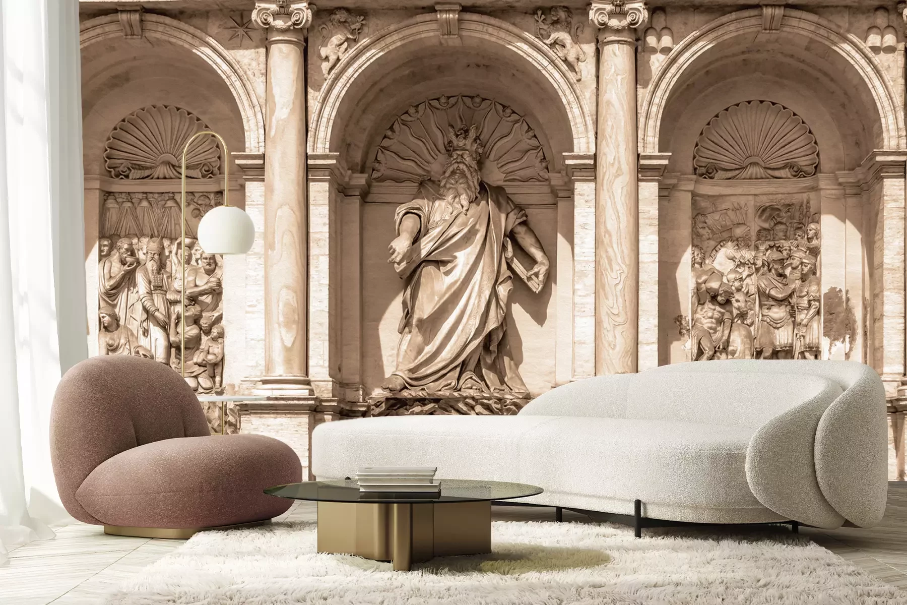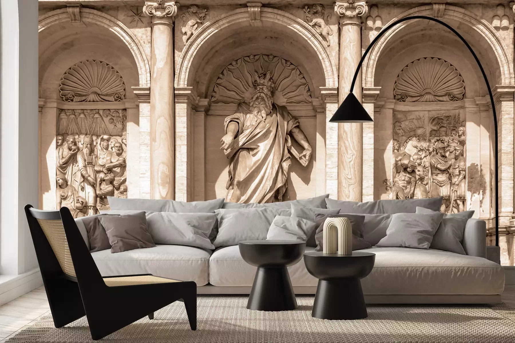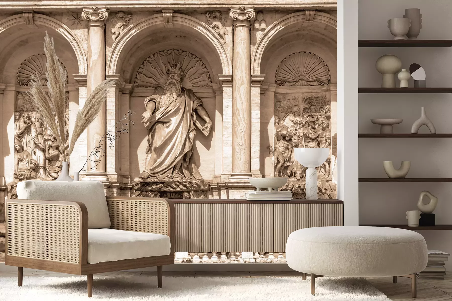 Das Material Premium+ besteht aus einer strukturierten Vinyl-Oberschicht und einem Trägermaterial (Vlies) mit einer Grammatur von 255 g/m², das kleine Unebenheiten der Wand zuverlässig kaschiert. Die feine Sandstruktur verleiht der Oberfläche eine luxuriöse Haptik, während das halbmatte Finish die Tiefe der Farben betont. Das Material ist dampfdurchlässig – so kann diese Fototapete auch in Küchen und Badezimmern eingesetzt werden. Die maximale Breite einer Tapetenbahn beträgt 100 cm. Bei größeren Abmessungen besteht die Fototapete aus mehreren gleich großen Bahnen. Der Kleber wird direkt auf die Wand aufgetragen, und die Fototapete wird auf Stoß angebracht, was für einen ästhetischen Effekt ohne sichtbare Fugen sorgt. Die Oberfläche ist pflegeleicht und kann bei Bedarf sanft mit einem feuchten Tuch abgewischt werden.