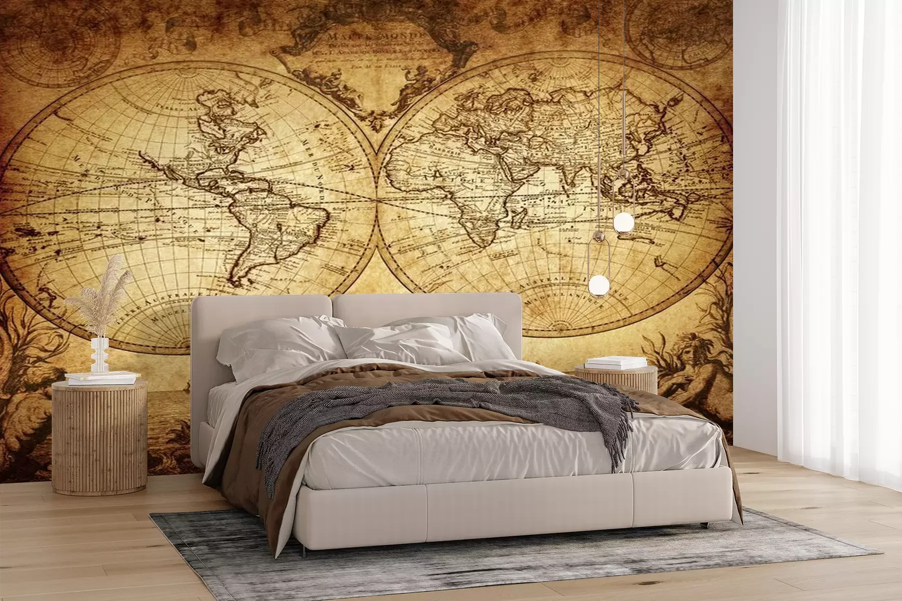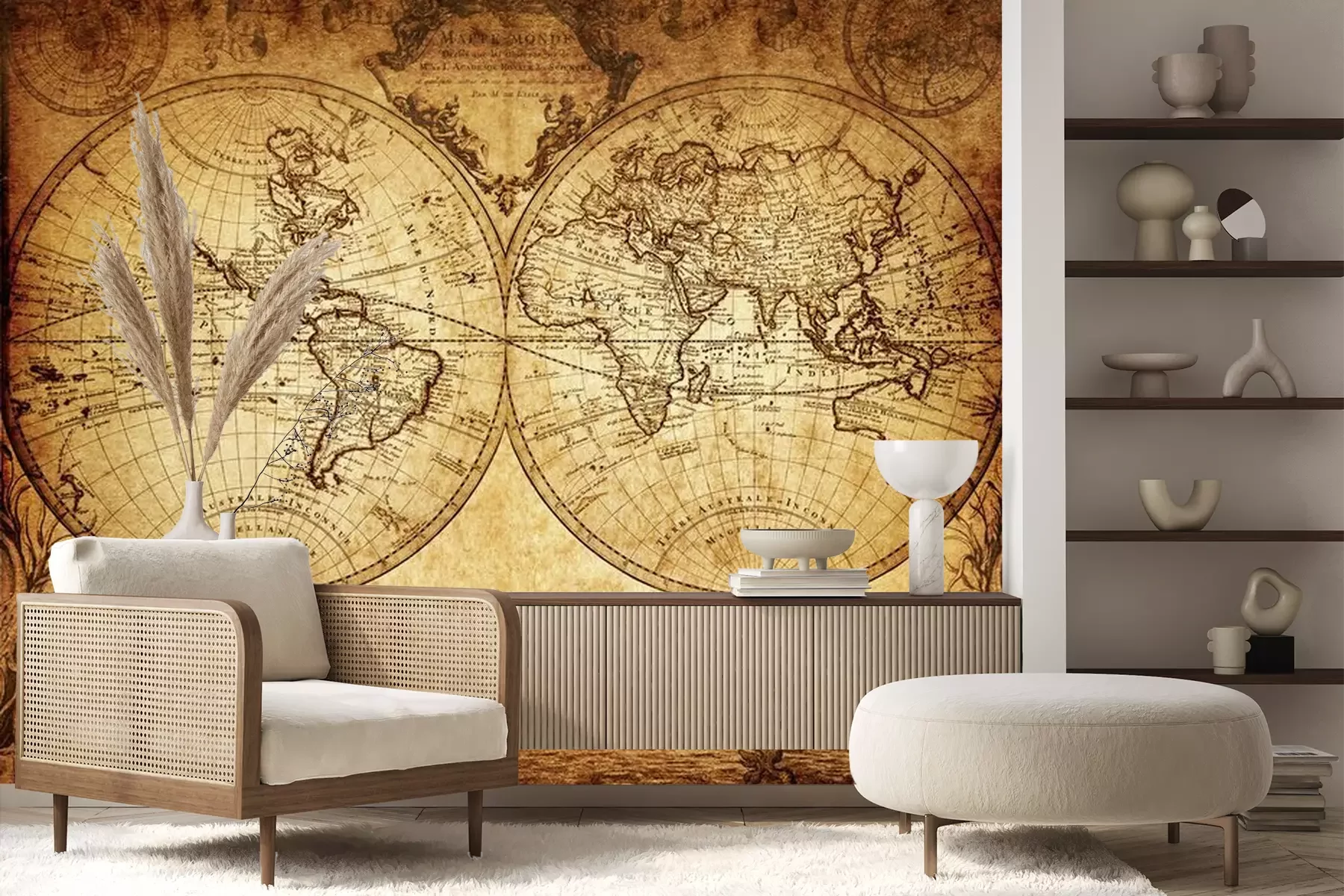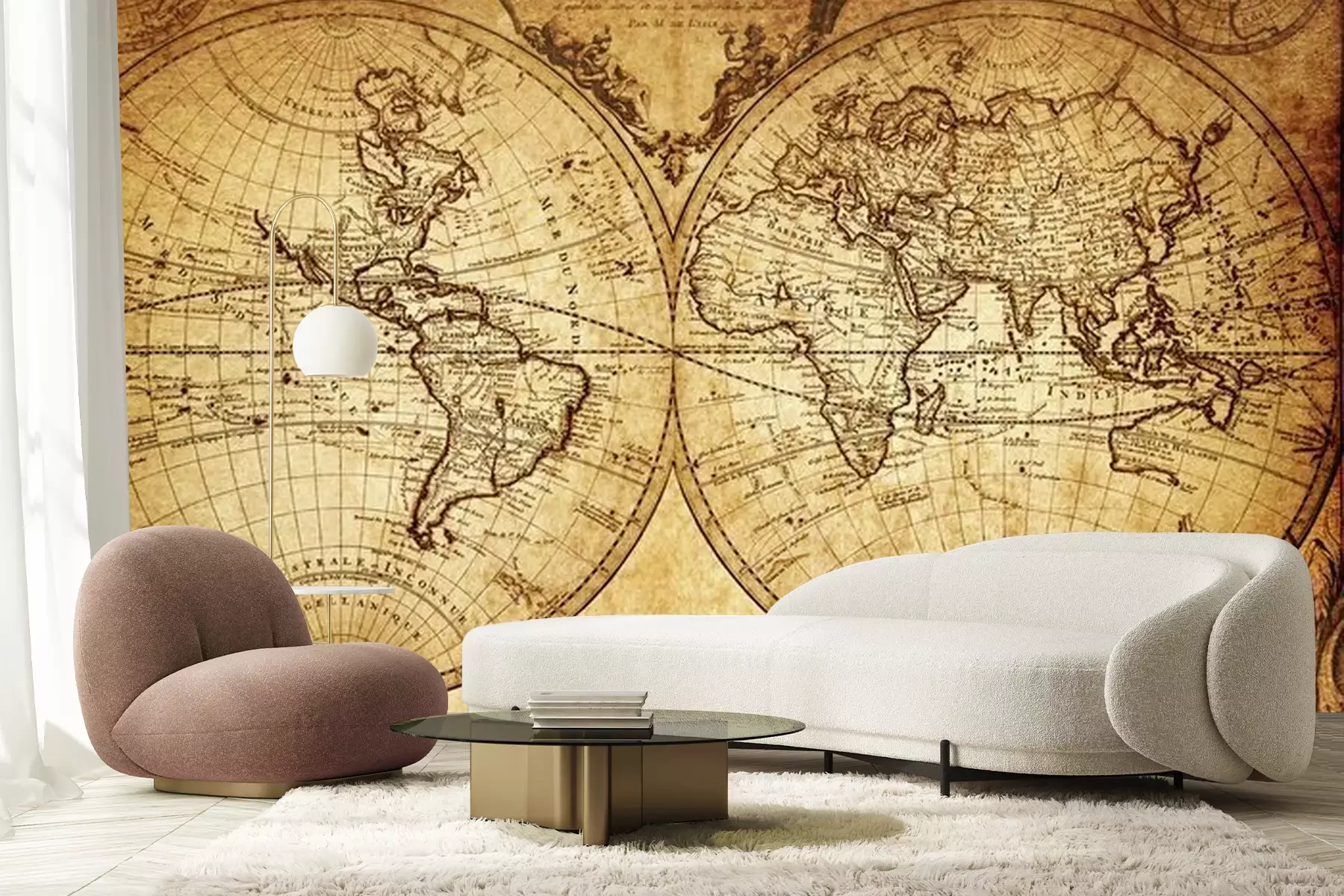 Alte Weltkarte unterteilt in HemisphärenProblemlose Lieferung durch vertrauenswürdige Spediteure
