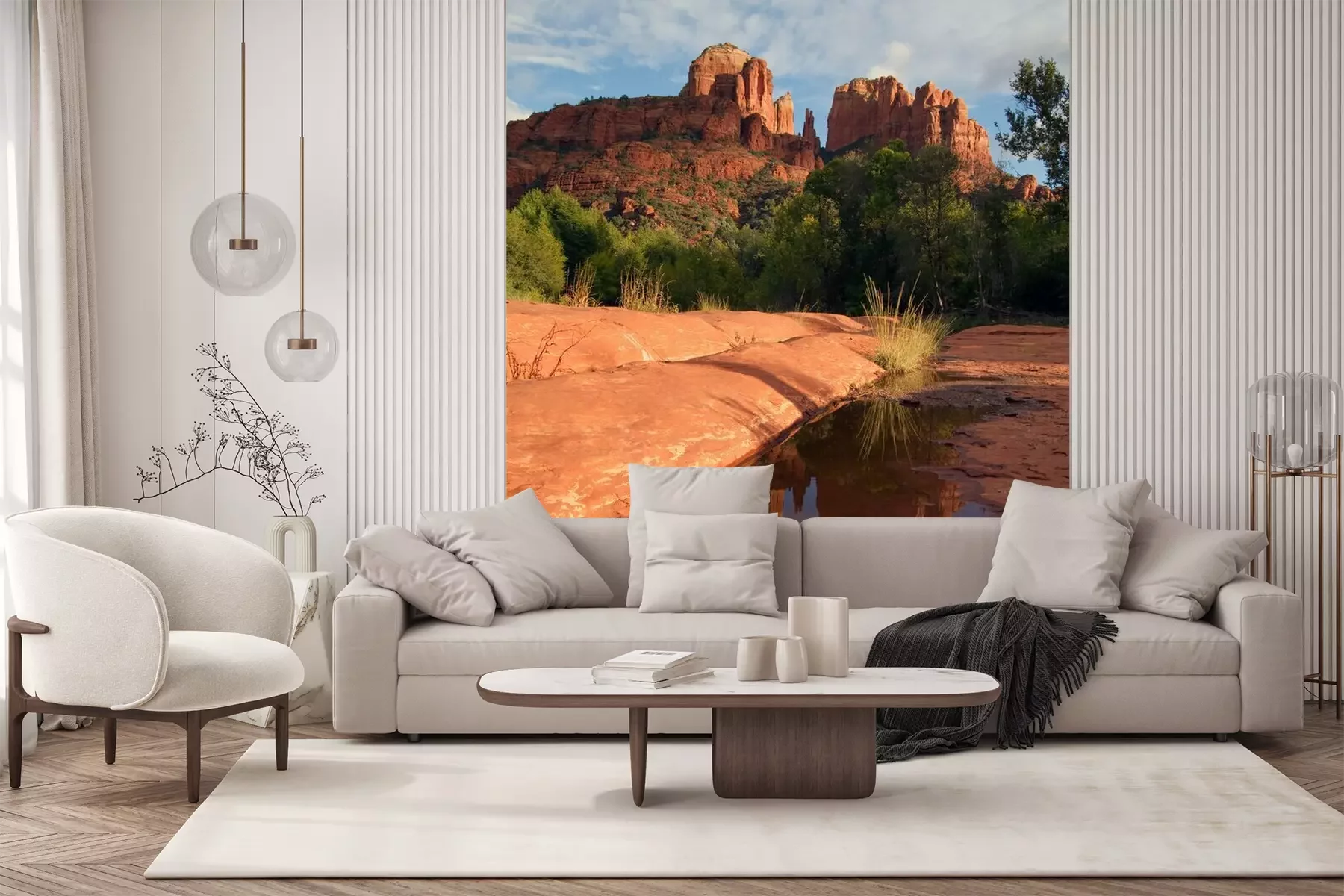 Die Fototapeten werden in Bahnen geliefert. Die Größe und die Anzahl der Bahnen, aus denen die gesamte Fototapete besteht, hängen vom gewählten Material ab. Wenn die Größe die maximale Breite des Materials überschreitet, besteht der Ausdruck aus mehreren gleich großen Bahnen.