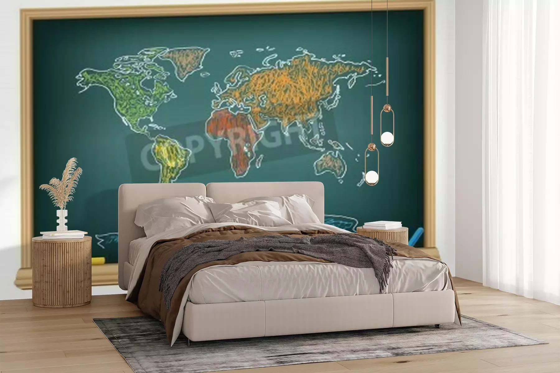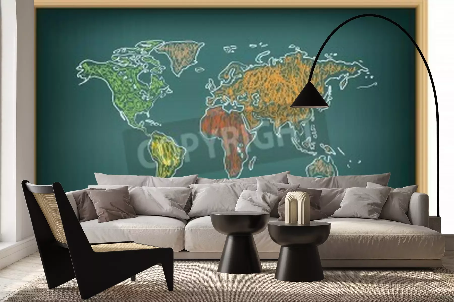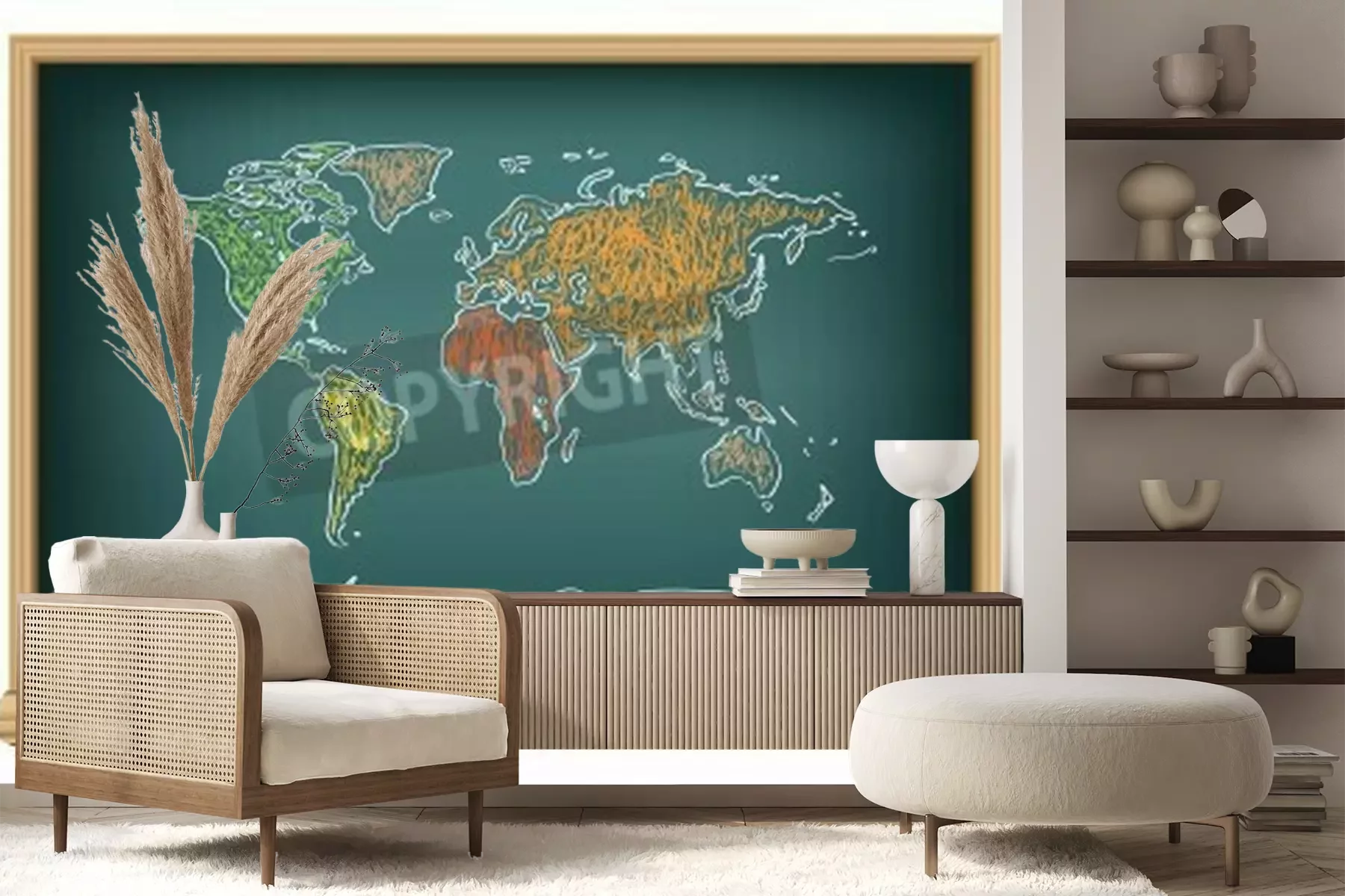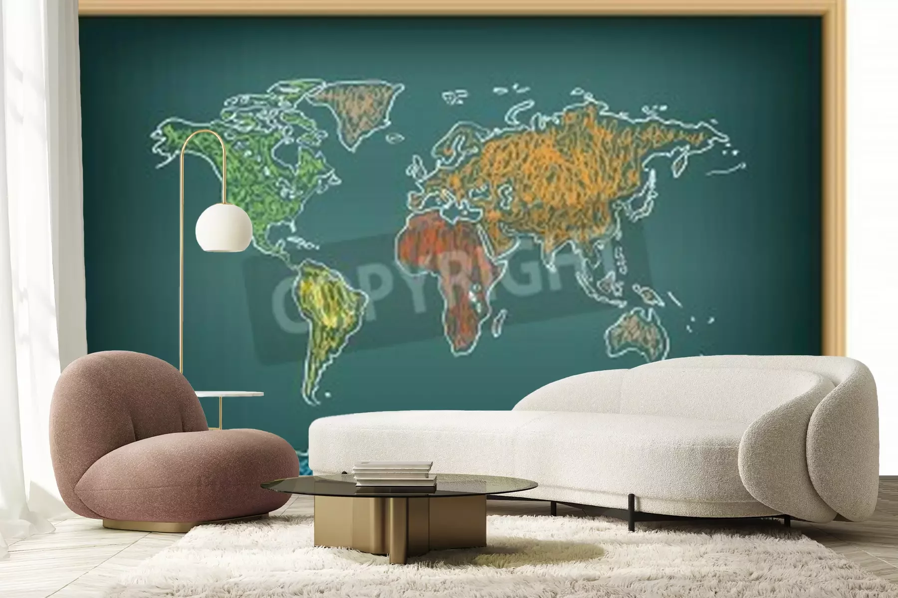 Fototapete Auf dem Brett gezeichnete Weltkarte