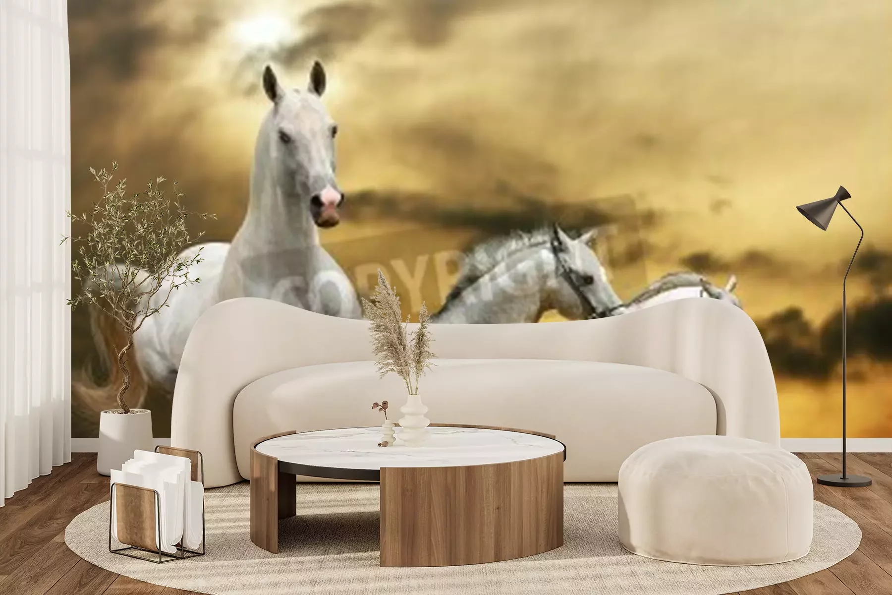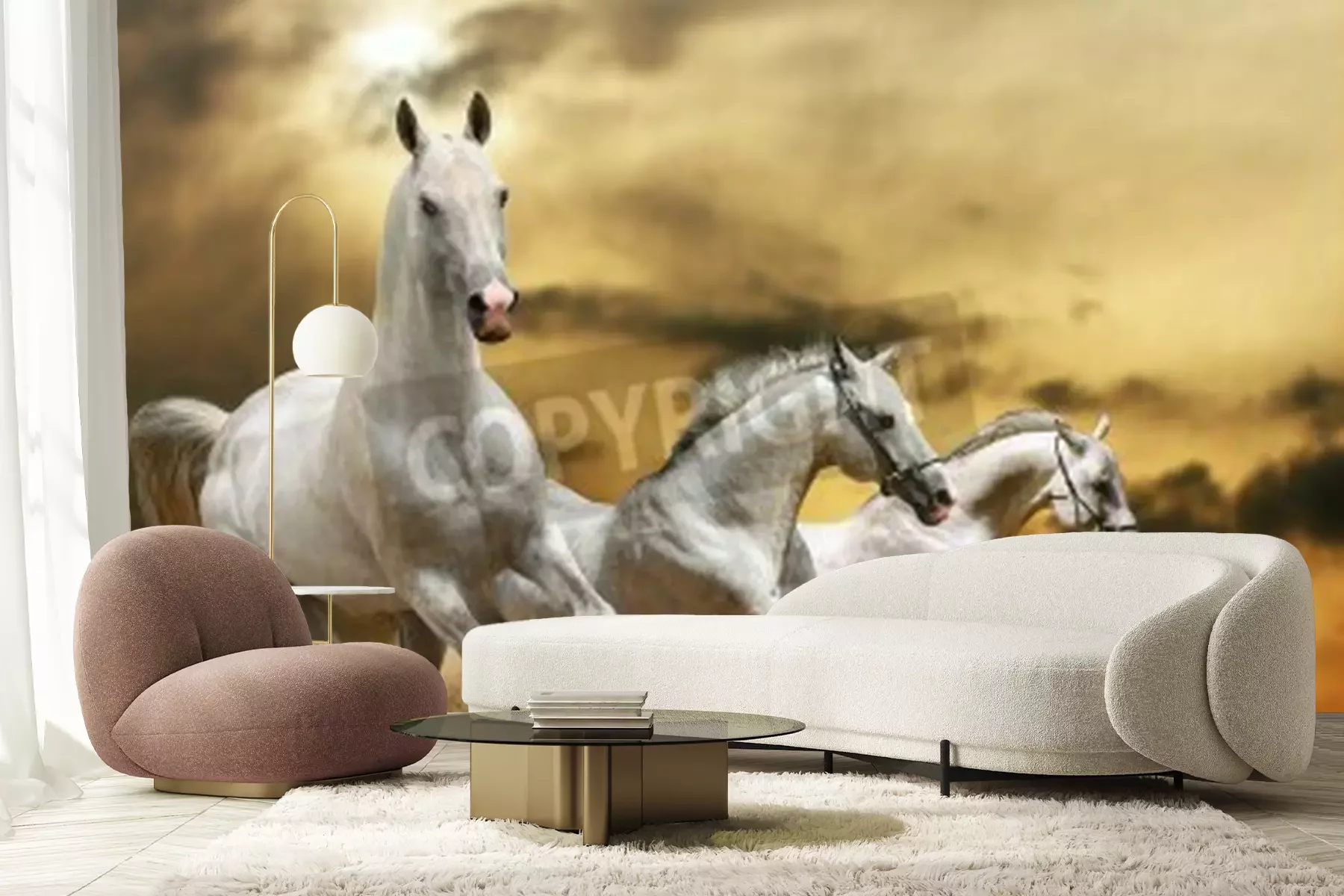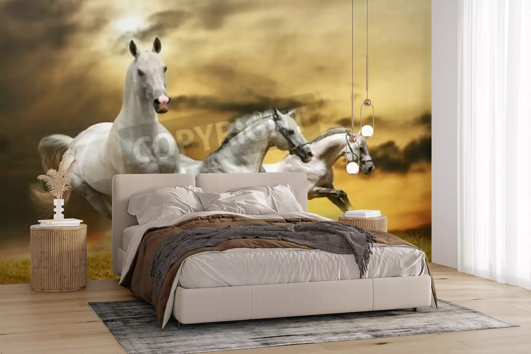 Fototapete Auf gras laufende pferde