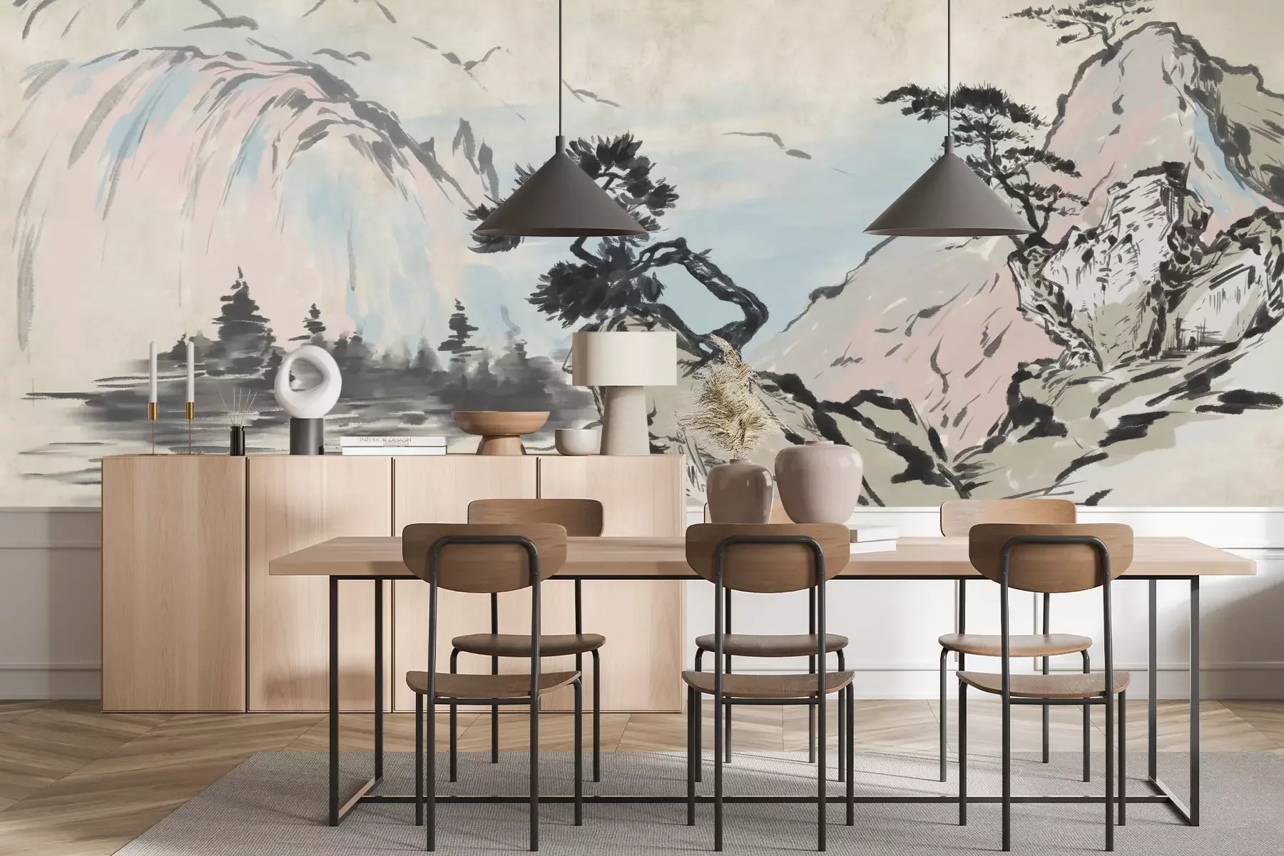 Das Material Premium+ besteht aus einer strukturierten Vinyl-Oberschicht und einem Trägermaterial (Vlies) mit einer Grammatur von 255 g/m², das kleine Unebenheiten der Wand zuverlässig kaschiert. Die feine Sandstruktur verleiht der Oberfläche eine luxuriöse Haptik, während das halbmatte Finish die Tiefe der Farben betont. Das Material ist dampfdurchlässig – so kann diese Fototapete auch in Küchen und Badezimmern eingesetzt werden. Die maximale Breite einer Tapetenbahn beträgt 100 cm. Bei größeren Abmessungen besteht die Fototapete aus mehreren gleich großen Bahnen. Der Kleber wird direkt auf die Wand aufgetragen, und die Fototapete wird auf Stoß angebracht, was für einen ästhetischen Effekt ohne sichtbare Fugen sorgt. Die Oberfläche ist pflegeleicht und kann bei Bedarf sanft mit einem feuchten Tuch abgewischt werden.