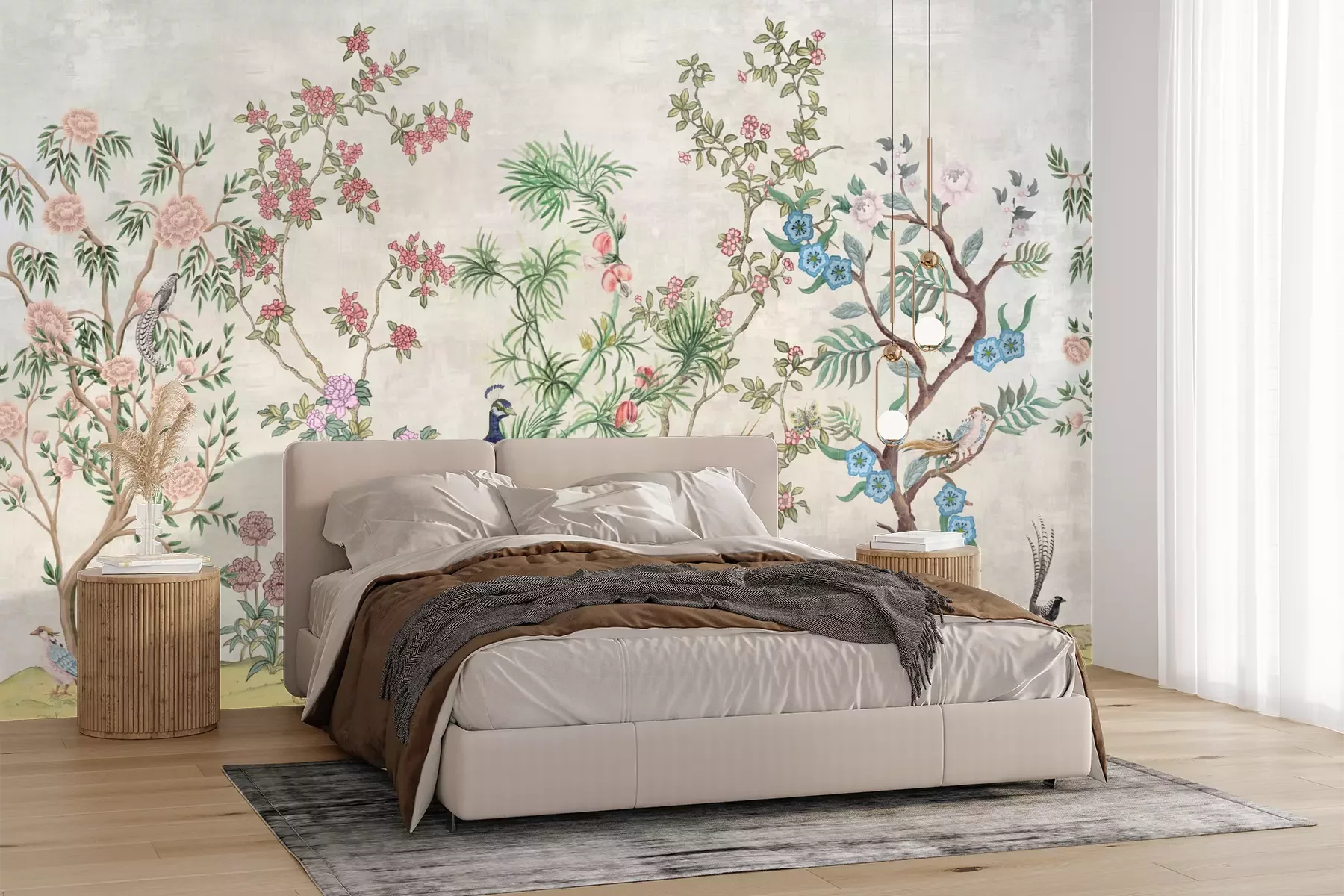 Das Material Premium+ besteht aus einer strukturierten Vinyl-Oberschicht und einem Trägermaterial (Vlies) mit einer Grammatur von 255 g/m², das kleine Unebenheiten der Wand zuverlässig kaschiert. Die feine Sandstruktur verleiht der Oberfläche eine luxuriöse Haptik, während das halbmatte Finish die Tiefe der Farben betont. Das Material ist dampfdurchlässig – so kann diese Fototapete auch in Küchen und Badezimmern eingesetzt werden. Die maximale Breite einer Tapetenbahn beträgt 100 cm. Bei größeren Abmessungen besteht die Fototapete aus mehreren gleich großen Bahnen. Der Kleber wird direkt auf die Wand aufgetragen, und die Fototapete wird auf Stoß angebracht, was für einen ästhetischen Effekt ohne sichtbare Fugen sorgt. Die Oberfläche ist pflegeleicht und kann bei Bedarf sanft mit einem feuchten Tuch abgewischt werden.