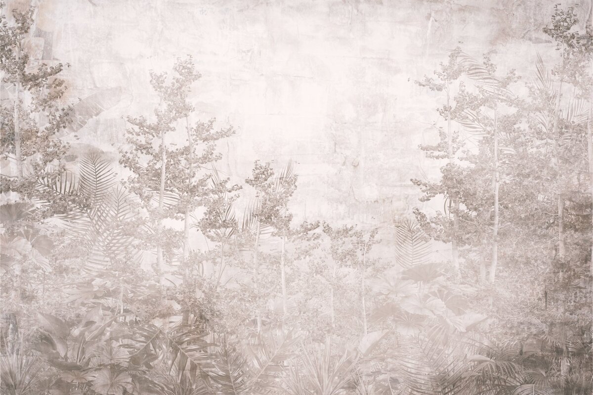 Fototapete: Bäume und tropische Pflanzen, monochromes botanisches Muster
