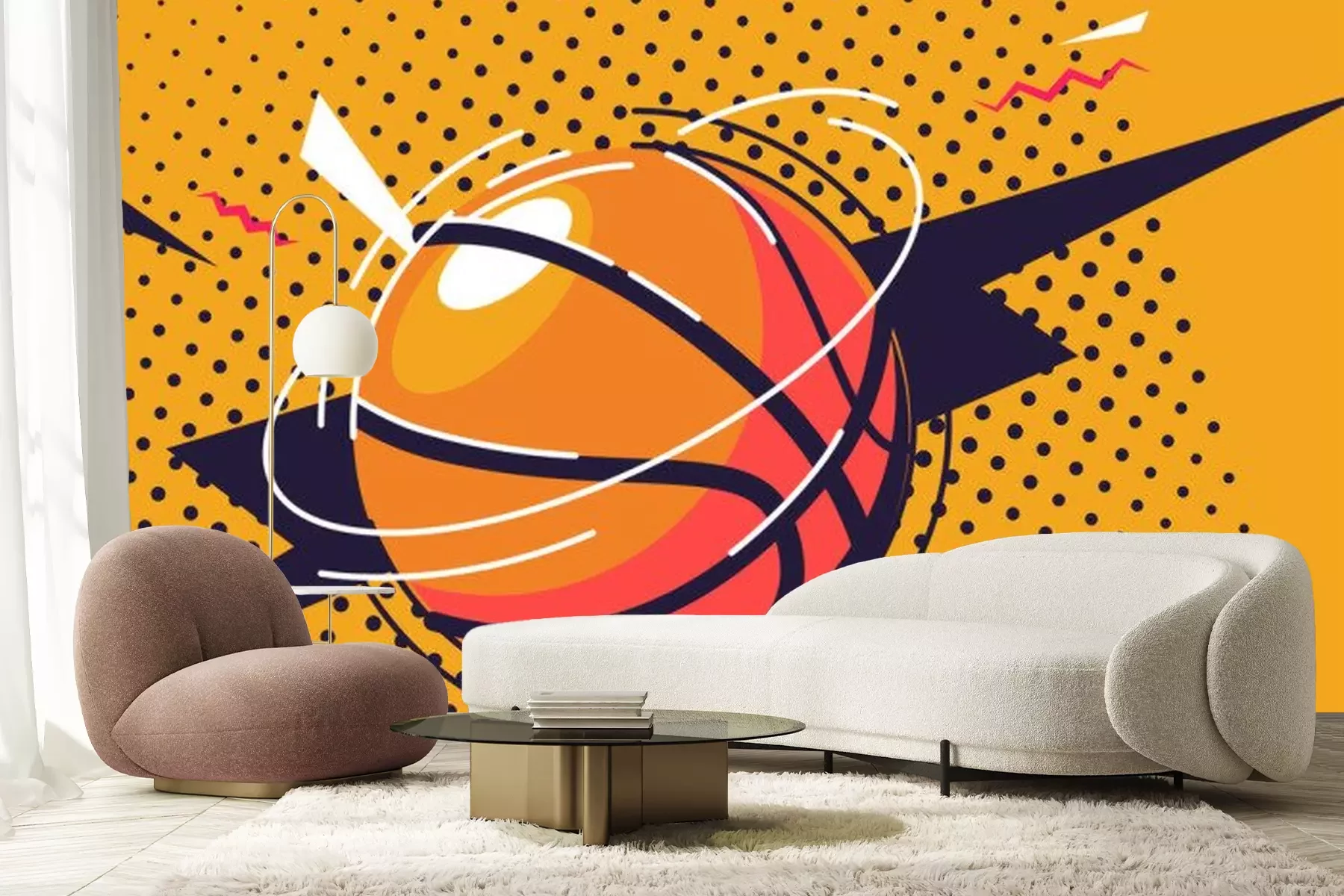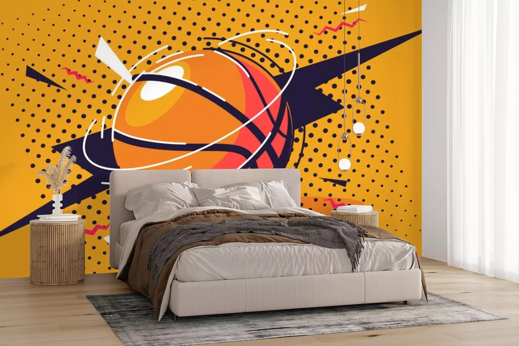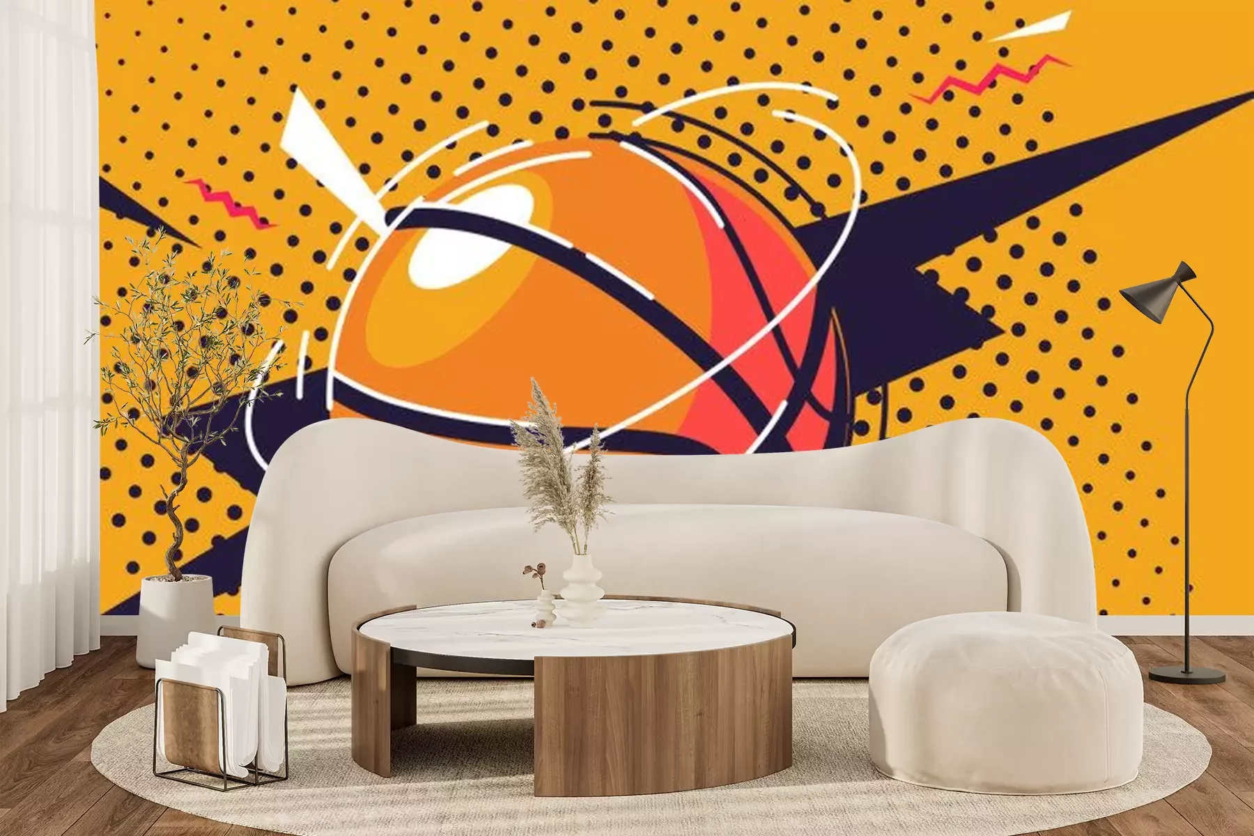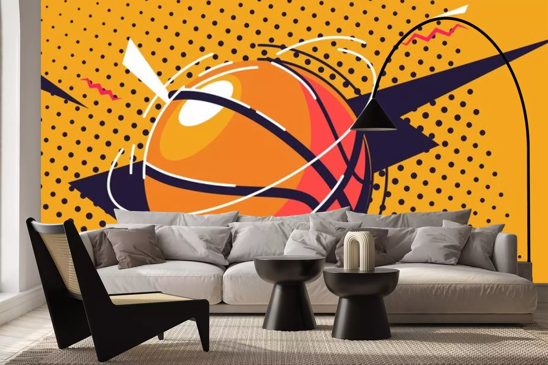 Fototapete Ball im Pop-Art-Stil auf orangefarbenem Hintergrund