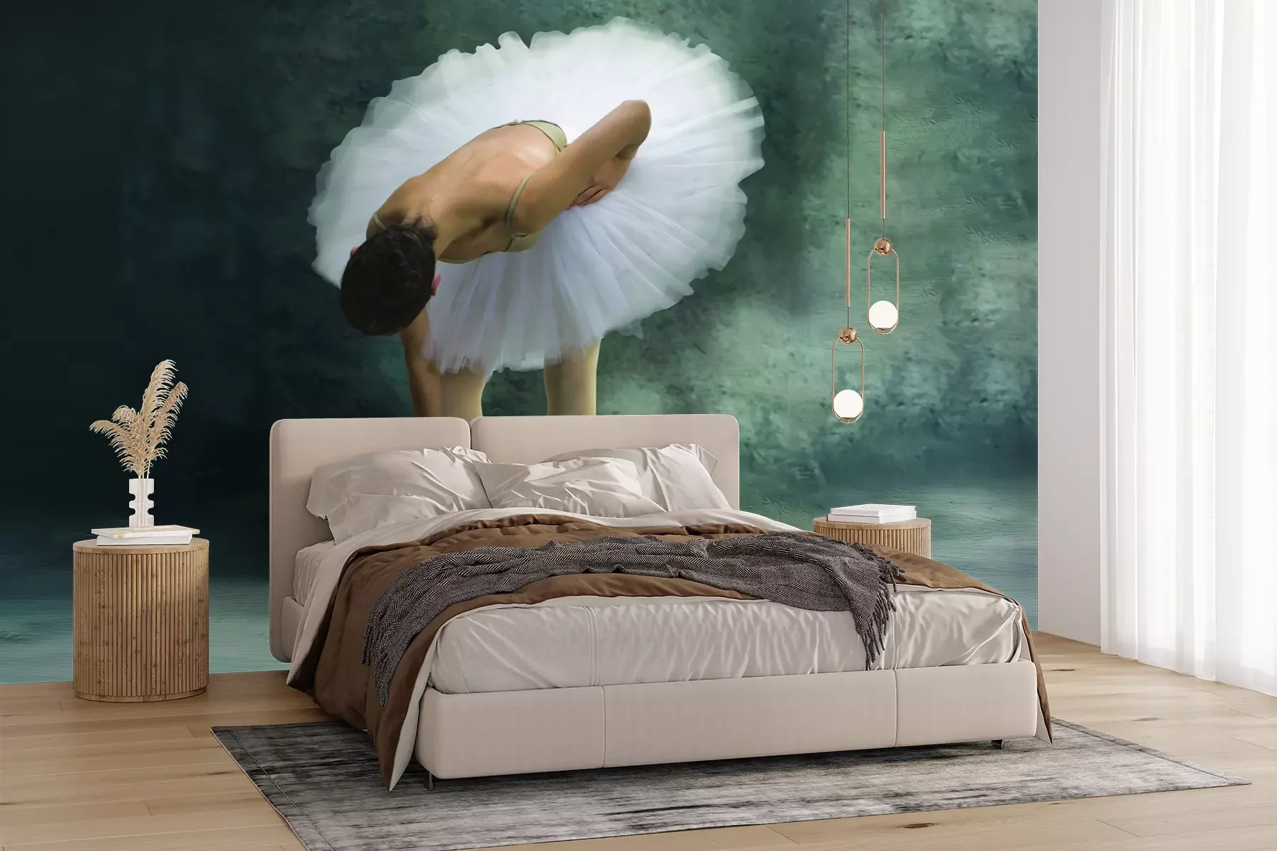 Das Material Premium+ besteht aus einer strukturierten Vinyl-Oberschicht und einem Trägermaterial (Vlies) mit einer Grammatur von 255 g/m², das kleine Unebenheiten der Wand zuverlässig kaschiert. Die feine Sandstruktur verleiht der Oberfläche eine luxuriöse Haptik, während das halbmatte Finish die Tiefe der Farben betont. Das Material ist dampfdurchlässig – so kann diese Fototapete auch in Küchen und Badezimmern eingesetzt werden. Die maximale Breite einer Tapetenbahn beträgt 100 cm. Bei größeren Abmessungen besteht die Fototapete aus mehreren gleich großen Bahnen. Der Kleber wird direkt auf die Wand aufgetragen, und die Fototapete wird auf Stoß angebracht, was für einen ästhetischen Effekt ohne sichtbare Fugen sorgt. Die Oberfläche ist pflegeleicht und kann bei Bedarf sanft mit einem feuchten Tuch abgewischt werden.