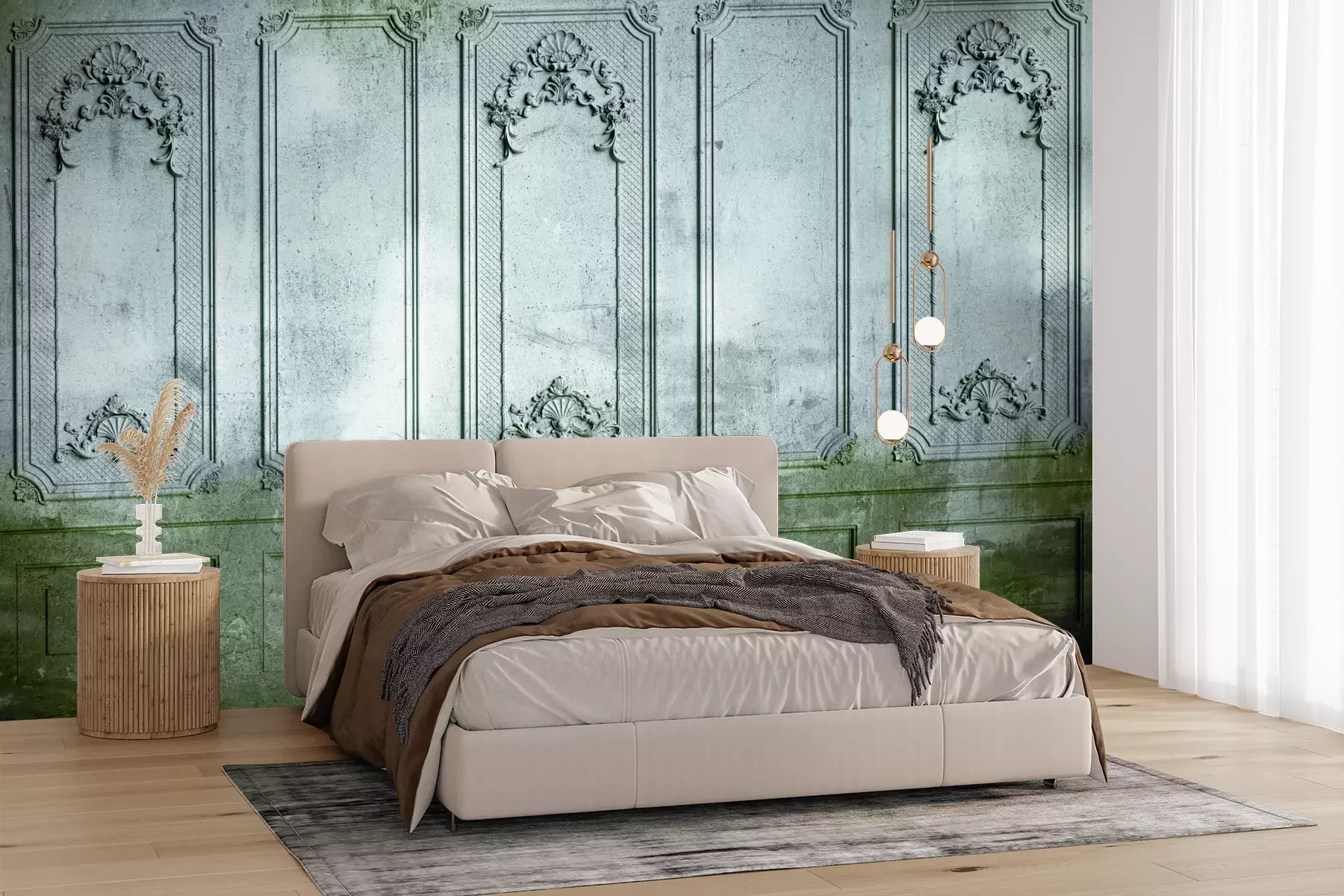Die Fototapeten werden in Bahnen geliefert. Die Größe und die Anzahl der Bahnen, aus denen die gesamte Fototapete besteht, hängen vom gewählten Material ab. Wenn die Größe die maximale Breite des Materials überschreitet, besteht der Ausdruck aus mehreren gleich großen Bahnen.