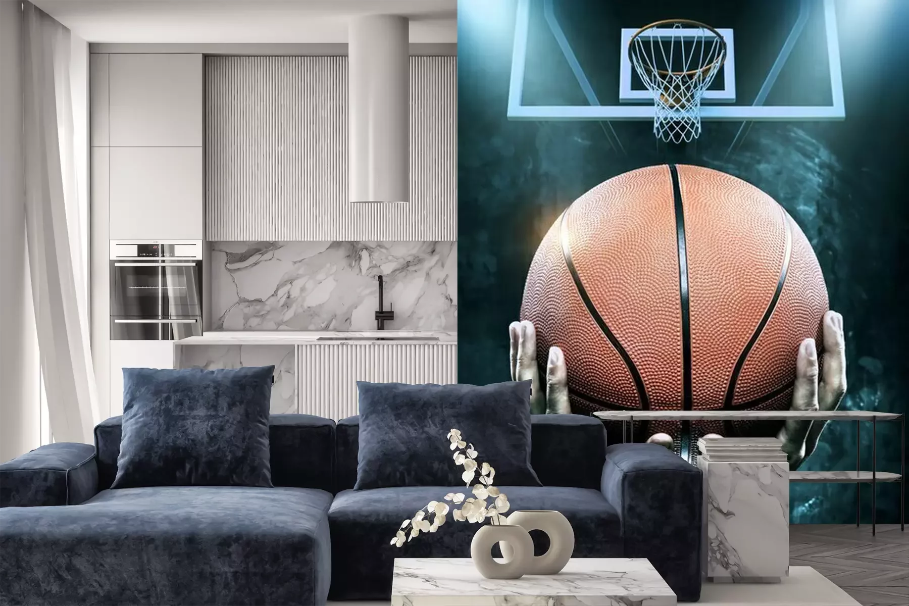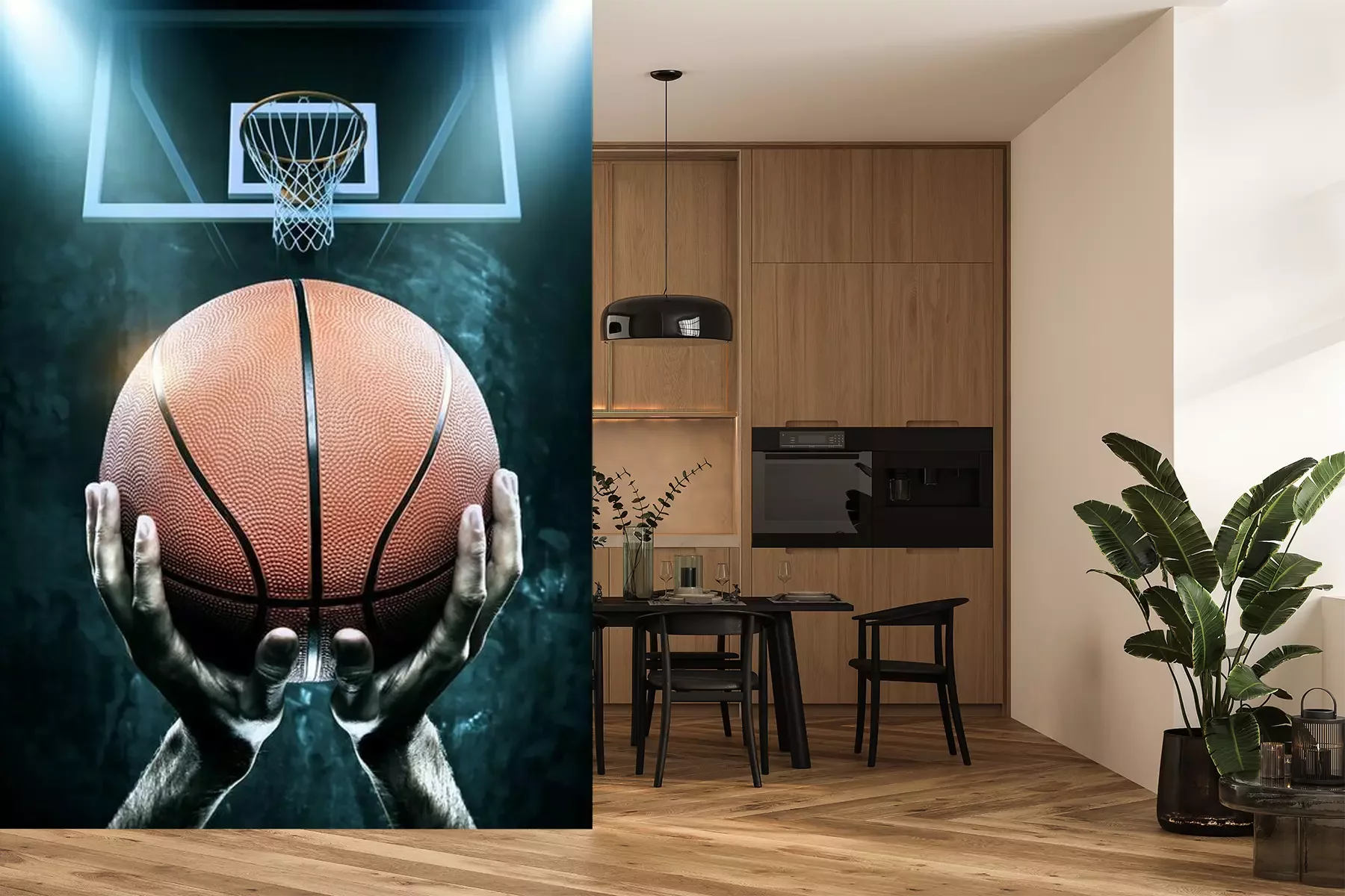 Fototapete Basketball 3D vor dem Dunk