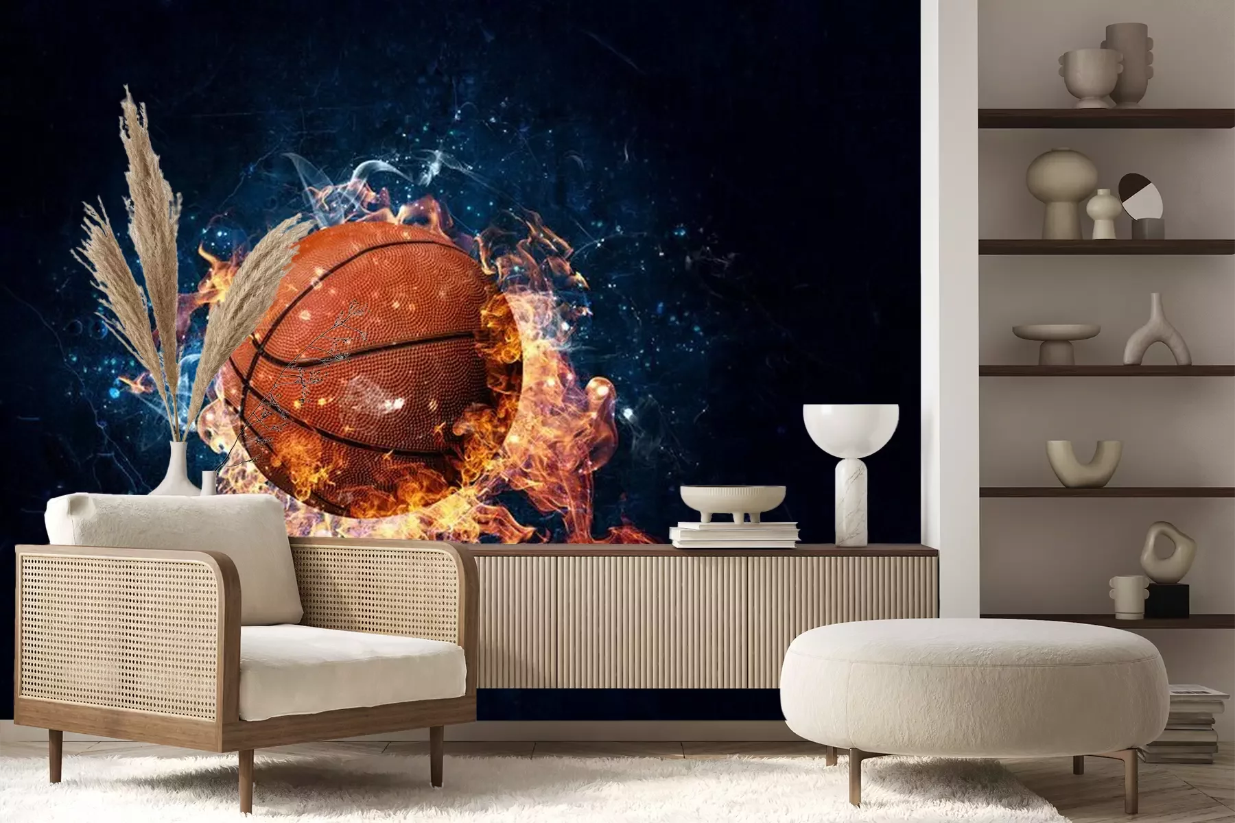 Das Material Premium+ besteht aus einer strukturierten Vinyl-Oberschicht und einem Trägermaterial (Vlies) mit einer Grammatur von 255 g/m², das kleine Unebenheiten der Wand zuverlässig kaschiert. Die feine Sandstruktur verleiht der Oberfläche eine luxuriöse Haptik, während das halbmatte Finish die Tiefe der Farben betont. Das Material ist dampfdurchlässig – so kann diese Fototapete auch in Küchen und Badezimmern eingesetzt werden. Die maximale Breite einer Tapetenbahn beträgt 100 cm. Bei größeren Abmessungen besteht die Fototapete aus mehreren gleich großen Bahnen. Der Kleber wird direkt auf die Wand aufgetragen, und die Fototapete wird auf Stoß angebracht, was für einen ästhetischen Effekt ohne sichtbare Fugen sorgt. Die Oberfläche ist pflegeleicht und kann bei Bedarf sanft mit einem feuchten Tuch abgewischt werden.