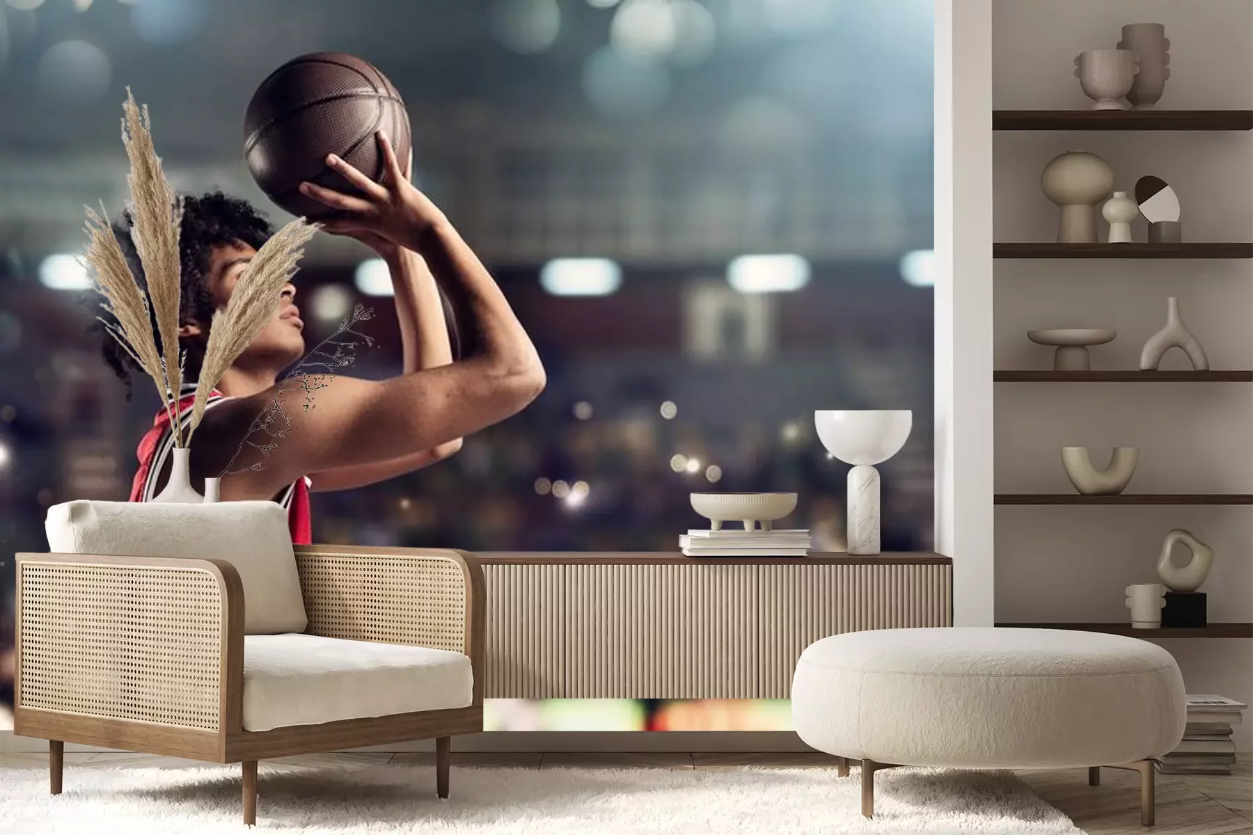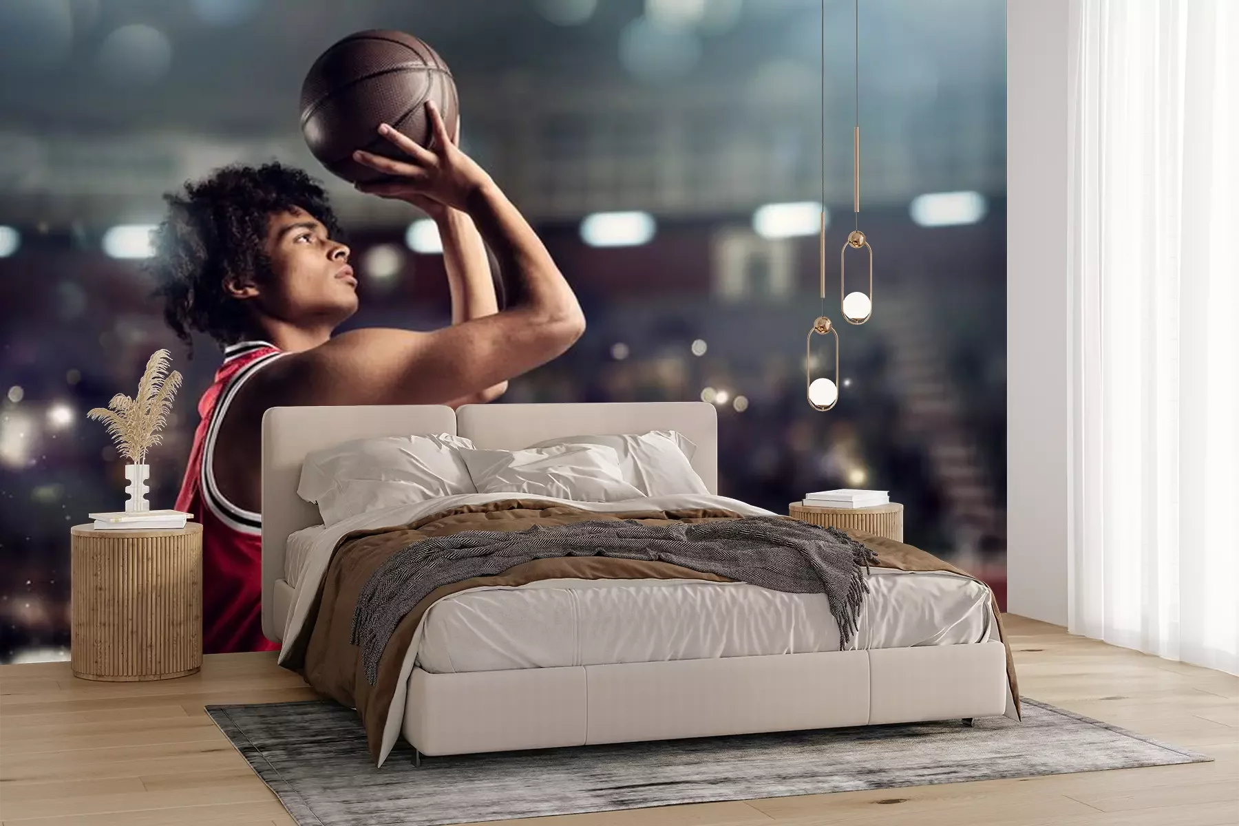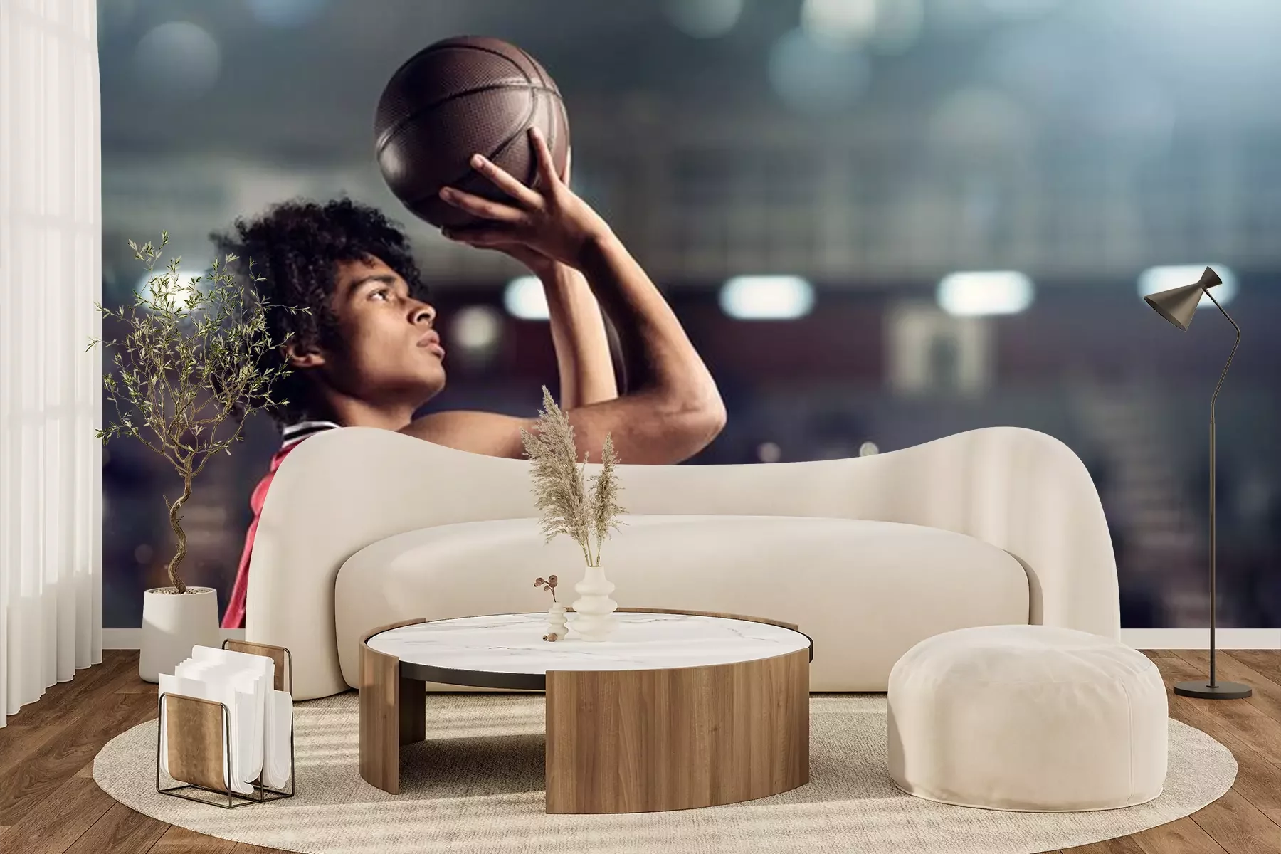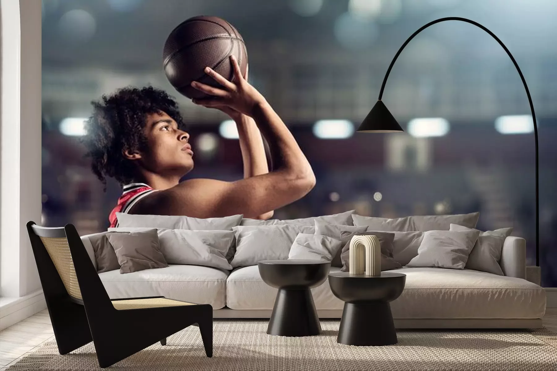 Fototapete Basketballspieler mit Ball vor dem Wurf
