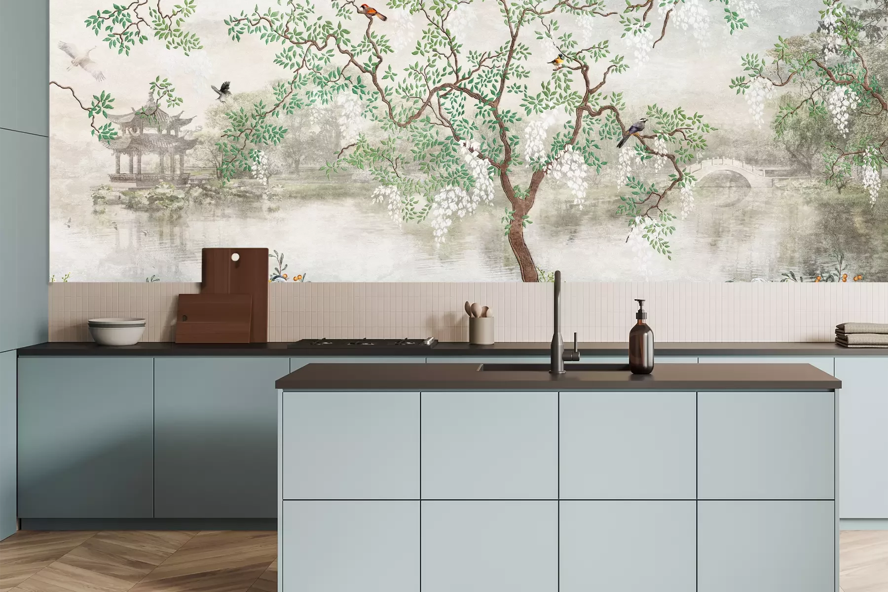Super schöne Küchentapete, genau nach Maß, passt perfekt.