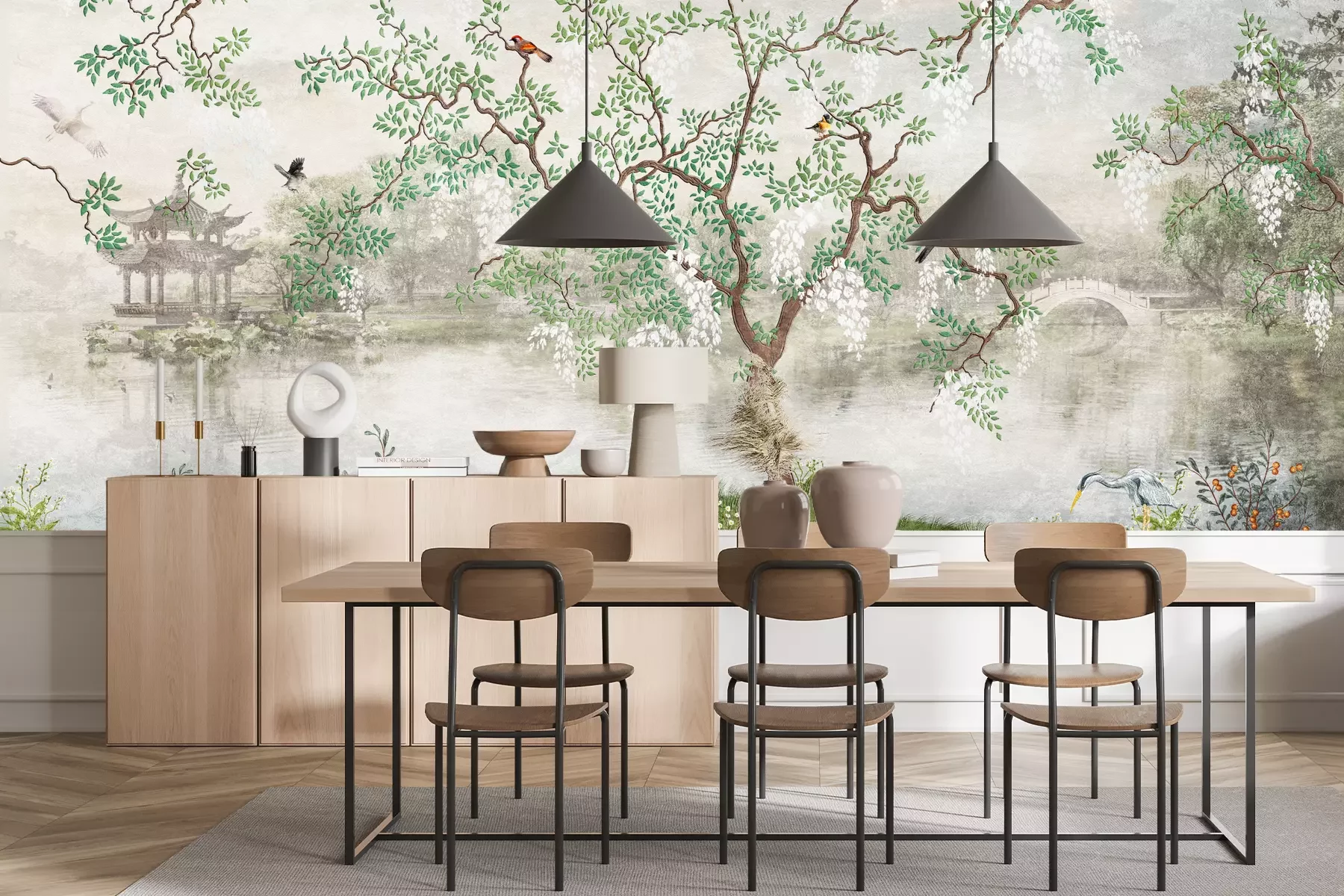 Das Material Premium+ besteht aus einer strukturierten Vinyl-Oberschicht und einem Trägermaterial (Vlies) mit einer Grammatur von 255 g/m², das kleine Unebenheiten der Wand zuverlässig kaschiert. Die feine Sandstruktur verleiht der Oberfläche eine luxuriöse Haptik, während das halbmatte Finish die Tiefe der Farben betont. Das Material ist dampfdurchlässig – so kann diese Fototapete auch in Küchen und Badezimmern eingesetzt werden. Die maximale Breite einer Tapetenbahn beträgt 100 cm. Bei größeren Abmessungen besteht die Fototapete aus mehreren gleich großen Bahnen. Der Kleber wird direkt auf die Wand aufgetragen, und die Fototapete wird auf Stoß angebracht, was für einen ästhetischen Effekt ohne sichtbare Fugen sorgt. Die Oberfläche ist pflegeleicht und kann bei Bedarf sanft mit einem feuchten Tuch abgewischt werden.