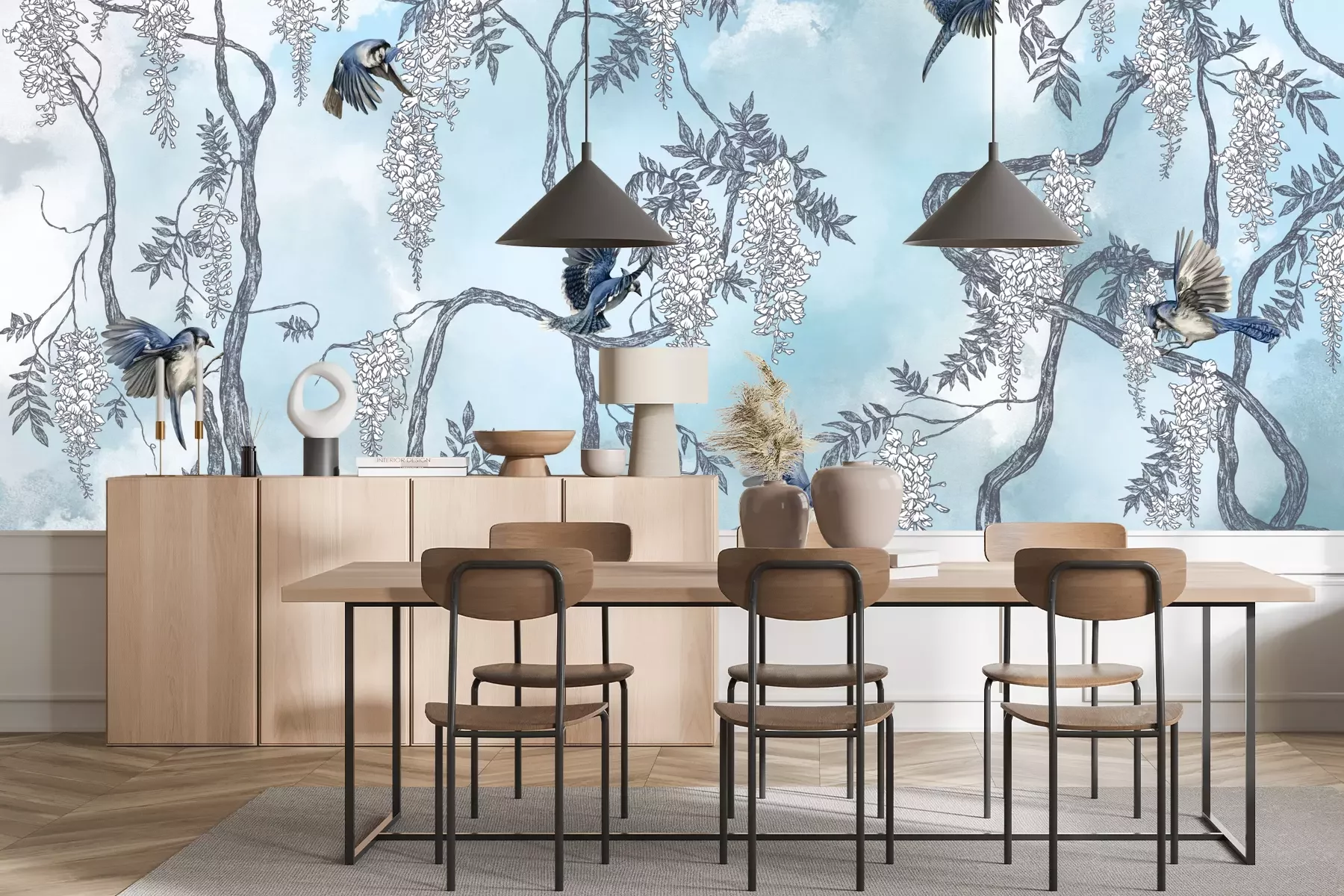 Das Material Premium+ besteht aus einer strukturierten Vinyl-Oberschicht und einem Trägermaterial (Vlies) mit einer Grammatur von 255 g/m², das kleine Unebenheiten der Wand zuverlässig kaschiert. Die feine Sandstruktur verleiht der Oberfläche eine luxuriöse Haptik, während das halbmatte Finish die Tiefe der Farben betont. Das Material ist dampfdurchlässig – so kann diese Fototapete auch in Küchen und Badezimmern eingesetzt werden. Die maximale Breite einer Tapetenbahn beträgt 100 cm. Bei größeren Abmessungen besteht die Fototapete aus mehreren gleich großen Bahnen. Der Kleber wird direkt auf die Wand aufgetragen, und die Fototapete wird auf Stoß angebracht, was für einen ästhetischen Effekt ohne sichtbare Fugen sorgt. Die Oberfläche ist pflegeleicht und kann bei Bedarf sanft mit einem feuchten Tuch abgewischt werden.