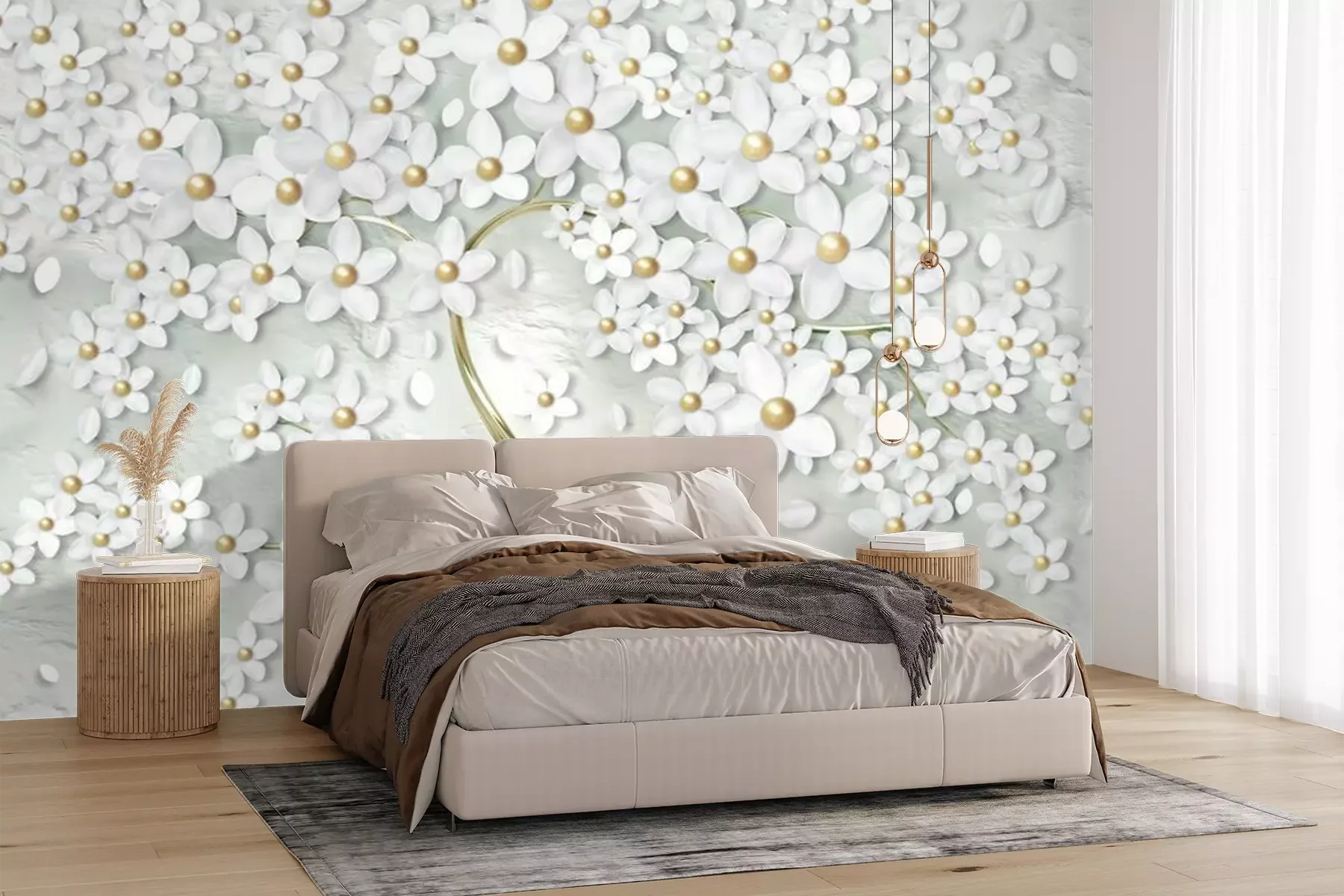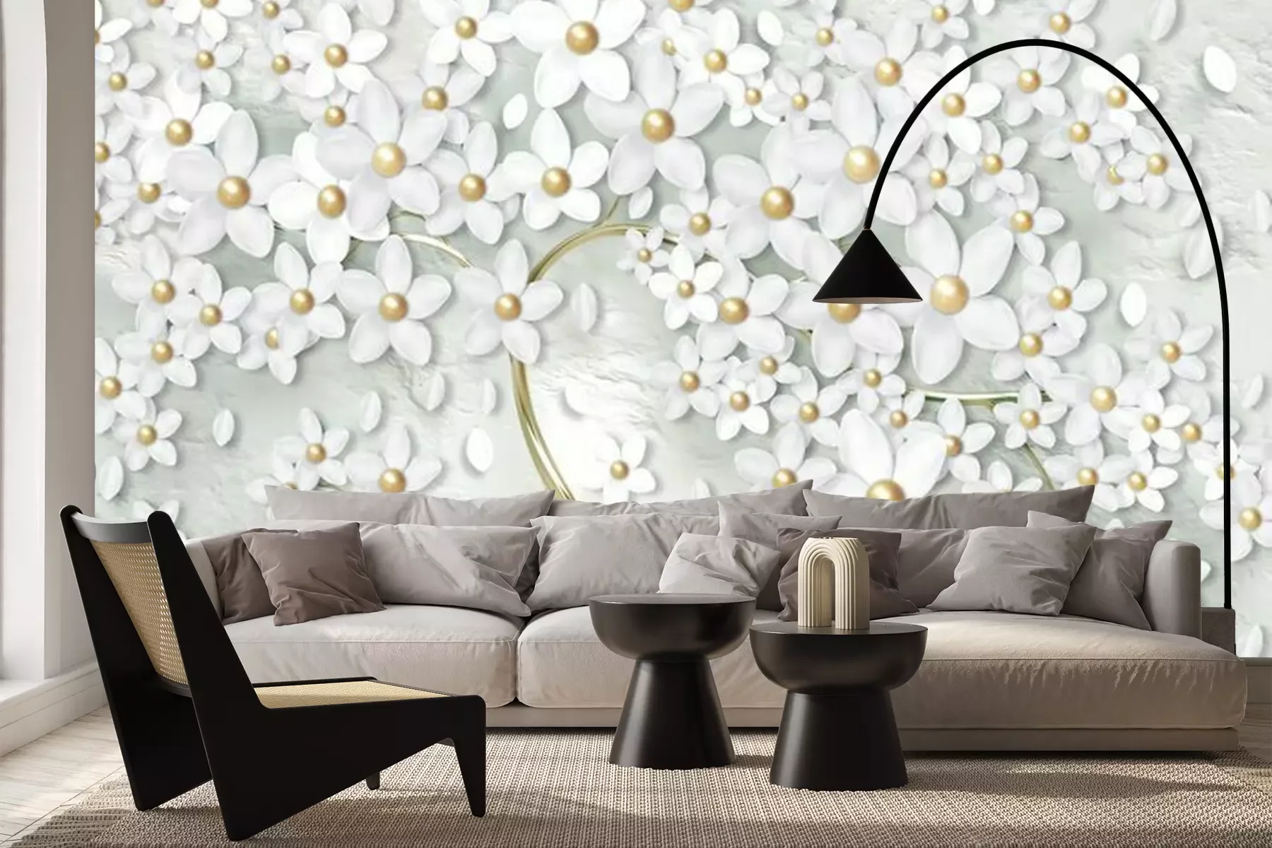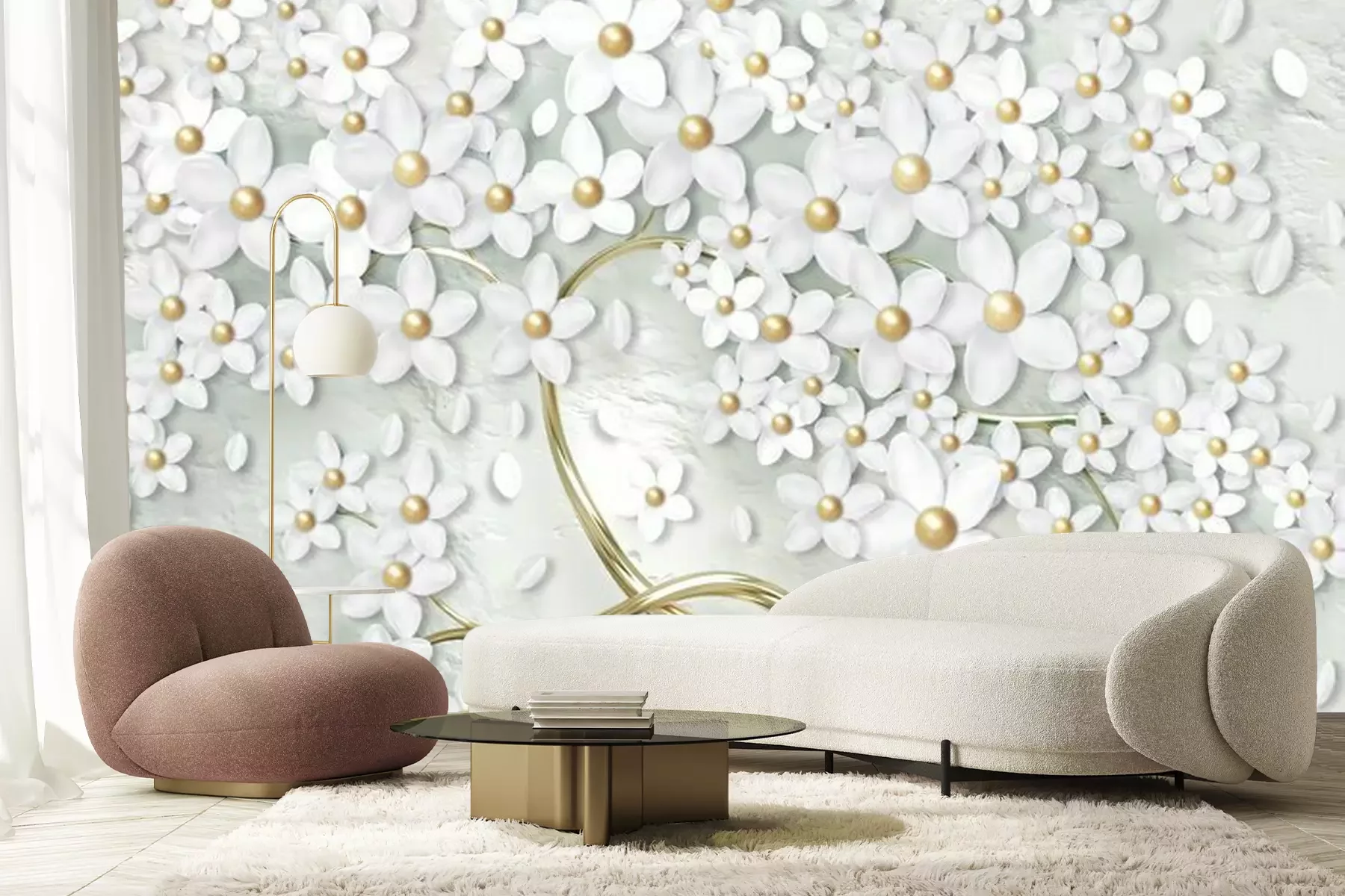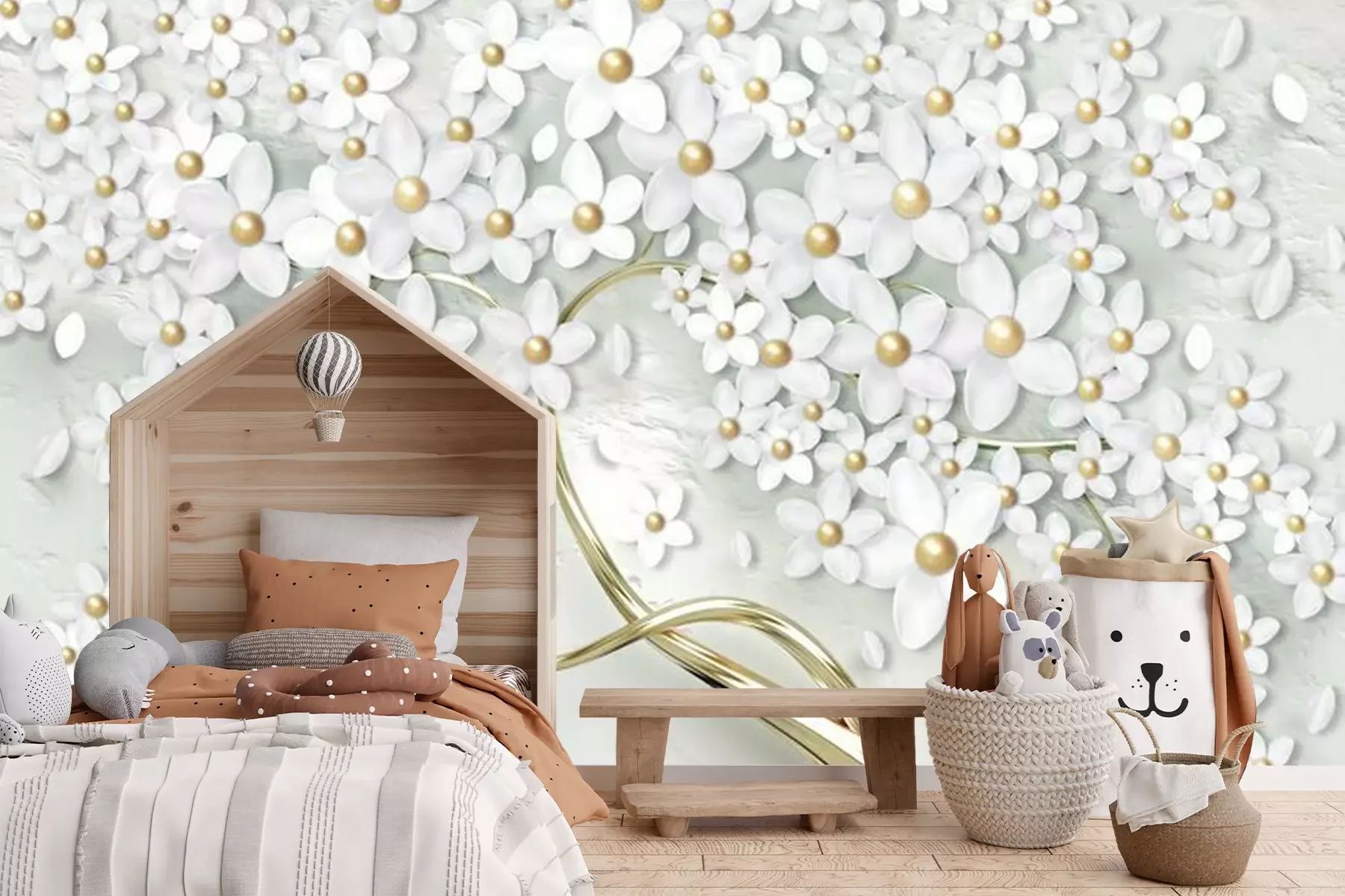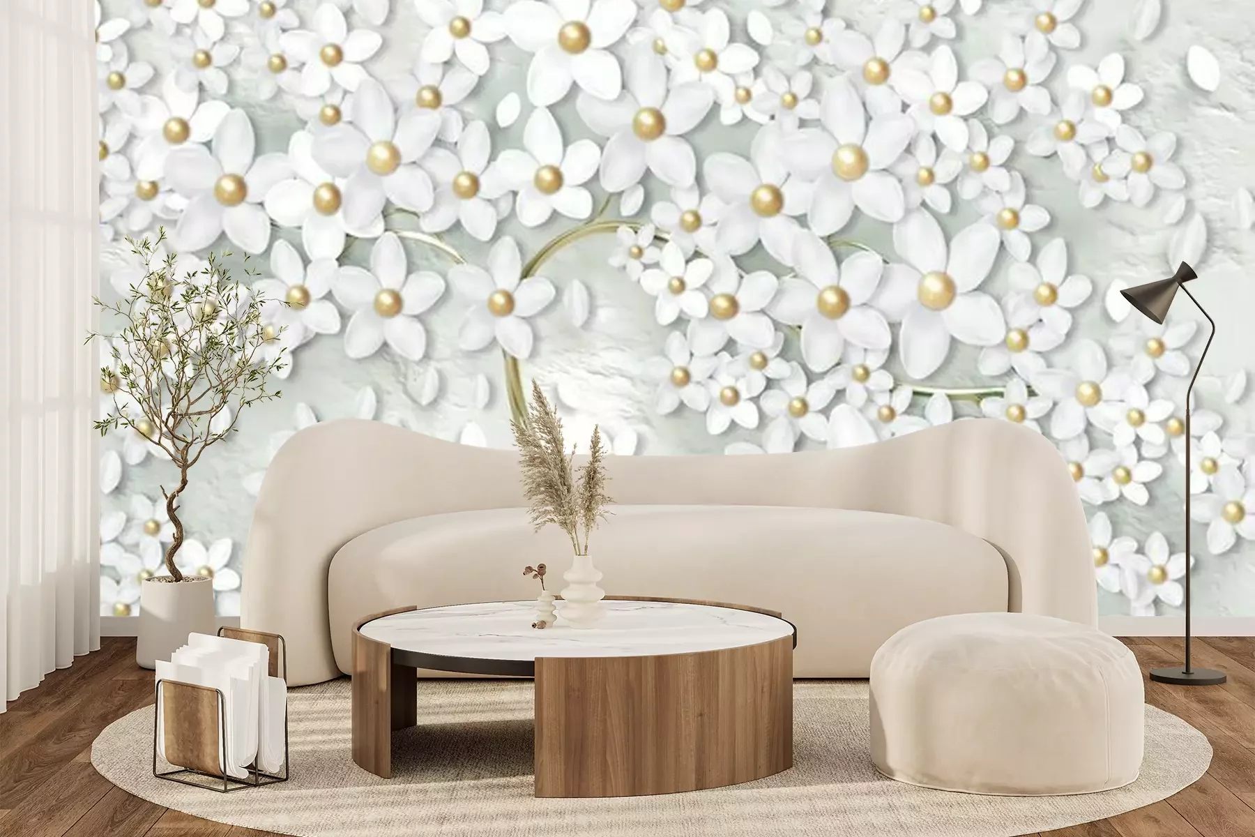 Fototapete Baum mit weißen 3D-Blumen