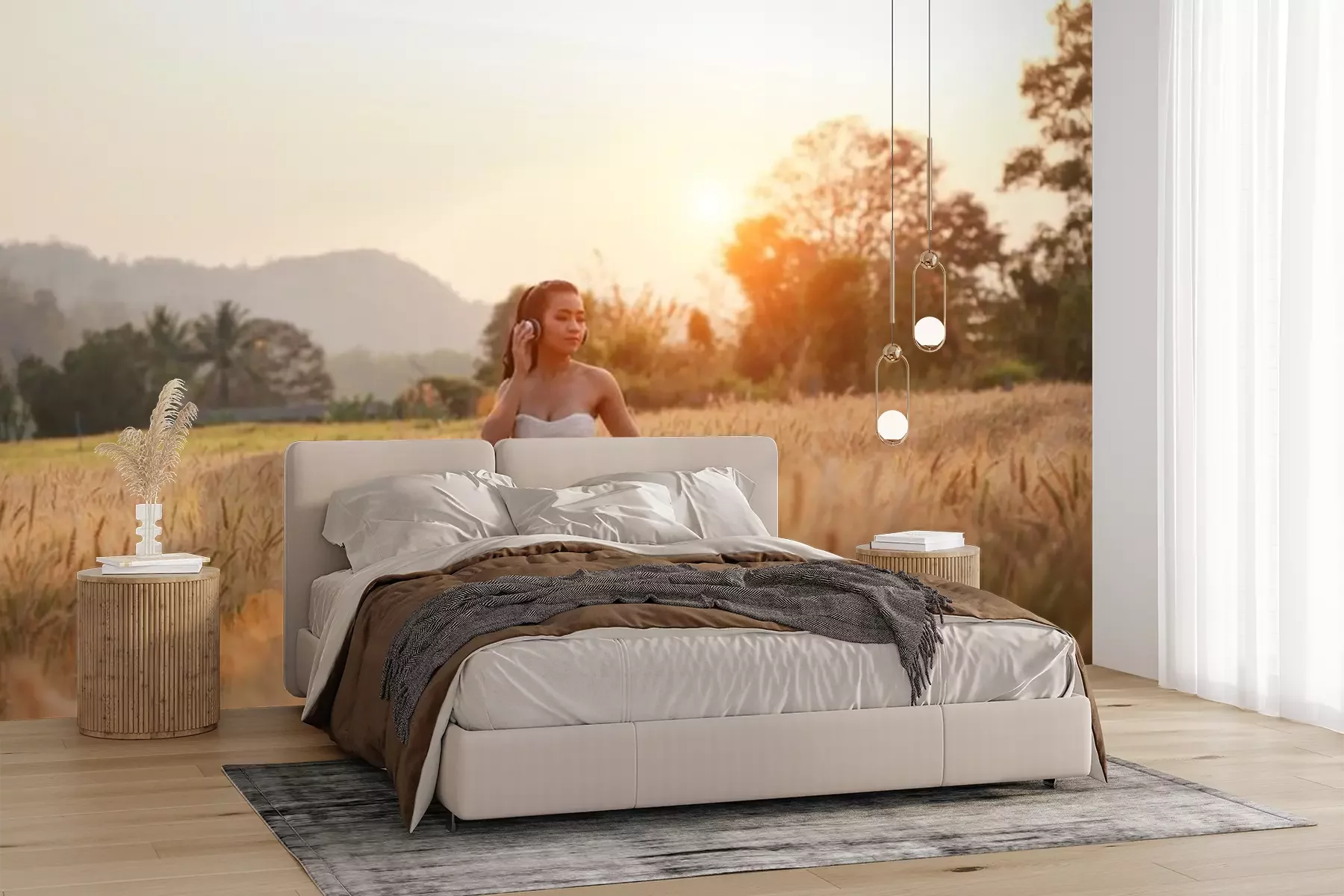 Fototapete Baumelnde Blätter in Herbstfarben auf Beton