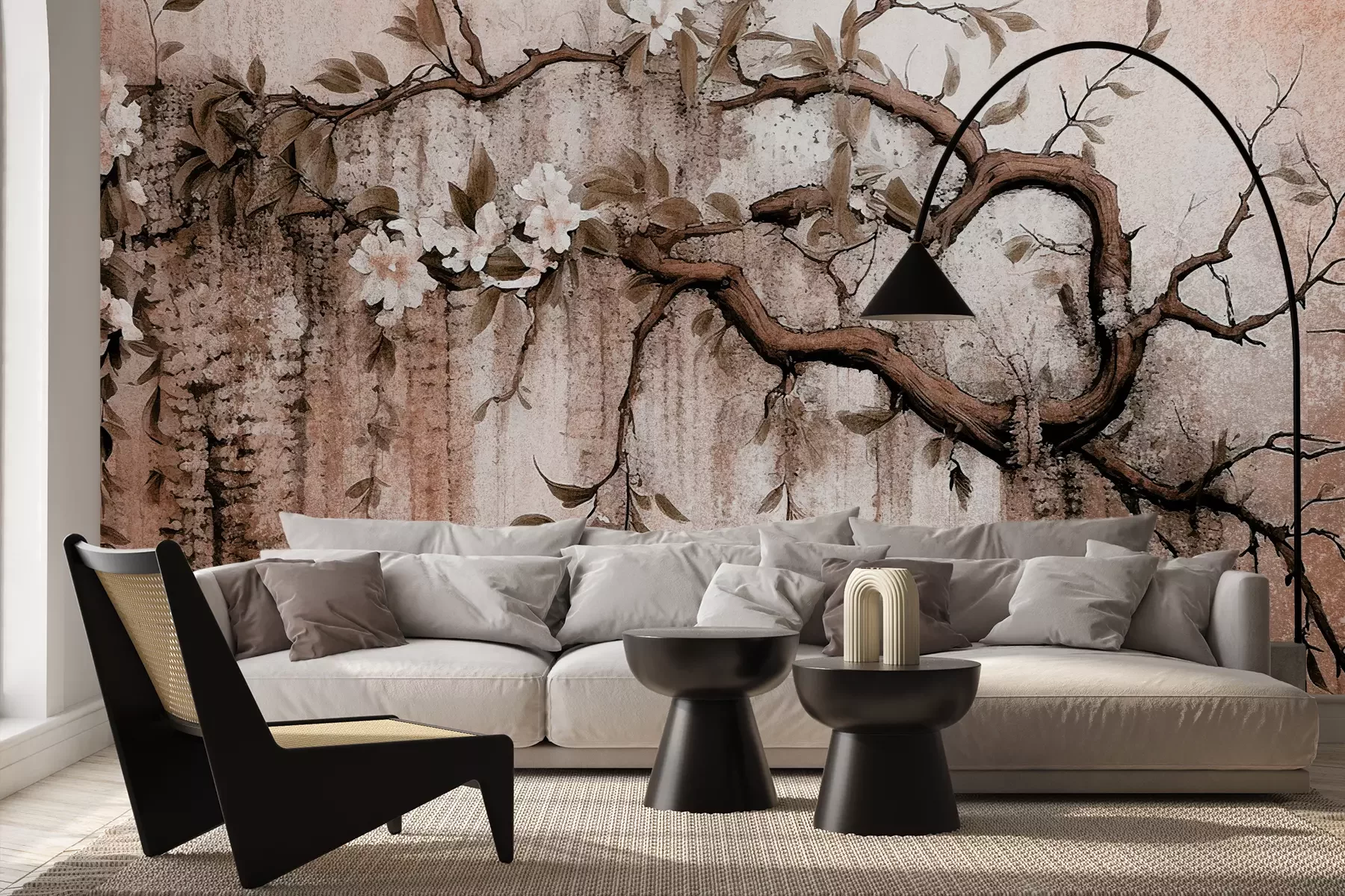 Das Material Premium+ besteht aus einer strukturierten Vinyl-Oberschicht und einem Trägermaterial (Vlies) mit einer Grammatur von 255 g/m², das kleine Unebenheiten der Wand zuverlässig kaschiert. Die feine Sandstruktur verleiht der Oberfläche eine luxuriöse Haptik, während das halbmatte Finish die Tiefe der Farben betont. Das Material ist dampfdurchlässig – so kann diese Fototapete auch in Küchen und Badezimmern eingesetzt werden. Die maximale Breite einer Tapetenbahn beträgt 100 cm. Bei größeren Abmessungen besteht die Fototapete aus mehreren gleich großen Bahnen. Der Kleber wird direkt auf die Wand aufgetragen, und die Fototapete wird auf Stoß angebracht, was für einen ästhetischen Effekt ohne sichtbare Fugen sorgt. Die Oberfläche ist pflegeleicht und kann bei Bedarf sanft mit einem feuchten Tuch abgewischt werden.