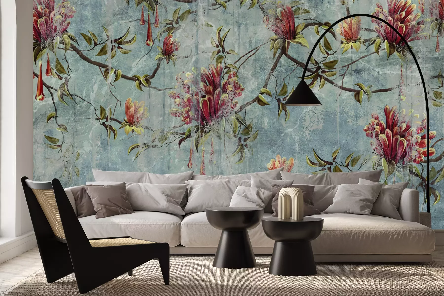 Das Material Premium+ besteht aus einer strukturierten Vinyl-Oberschicht und einem Trägermaterial (Vlies) mit einer Grammatur von 255 g/m², das kleine Unebenheiten der Wand zuverlässig kaschiert. Die feine Sandstruktur verleiht der Oberfläche eine luxuriöse Haptik, während das halbmatte Finish die Tiefe der Farben betont. Das Material ist dampfdurchlässig – so kann diese Fototapete auch in Küchen und Badezimmern eingesetzt werden. Die maximale Breite einer Tapetenbahn beträgt 100 cm. Bei größeren Abmessungen besteht die Fototapete aus mehreren gleich großen Bahnen. Der Kleber wird direkt auf die Wand aufgetragen, und die Fototapete wird auf Stoß angebracht, was für einen ästhetischen Effekt ohne sichtbare Fugen sorgt. Die Oberfläche ist pflegeleicht und kann bei Bedarf sanft mit einem feuchten Tuch abgewischt werden.