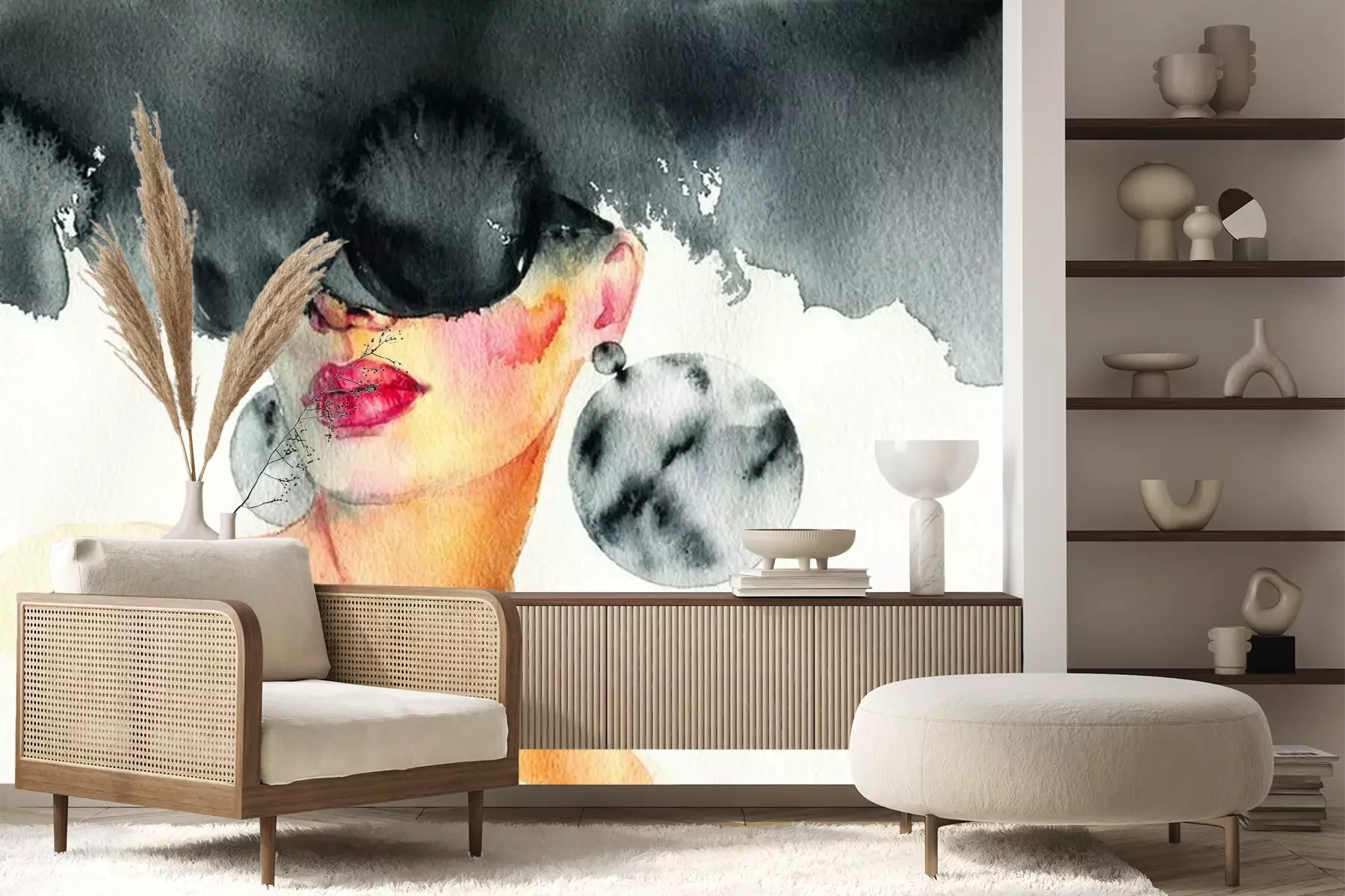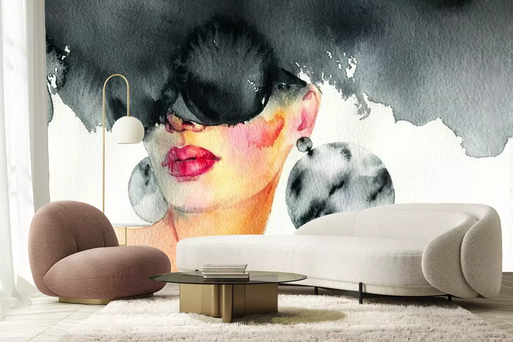 Fototapete Beautiful woman. fashion illustration. watercolor painting