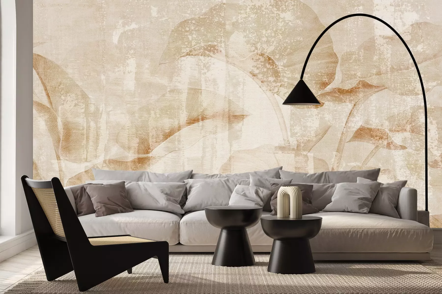 Das Material Premium+ besteht aus einer strukturierten Vinyl-Oberschicht und einem Trägermaterial (Vlies) mit einer Grammatur von 255 g/m², das kleine Unebenheiten der Wand zuverlässig kaschiert. Die feine Sandstruktur verleiht der Oberfläche eine luxuriöse Haptik, während das halbmatte Finish die Tiefe der Farben betont. Das Material ist dampfdurchlässig – so kann diese Fototapete auch in Küchen und Badezimmern eingesetzt werden. Die maximale Breite einer Tapetenbahn beträgt 100 cm. Bei größeren Abmessungen besteht die Fototapete aus mehreren gleich großen Bahnen. Der Kleber wird direkt auf die Wand aufgetragen, und die Fototapete wird auf Stoß angebracht, was für einen ästhetischen Effekt ohne sichtbare Fugen sorgt. Die Oberfläche ist pflegeleicht und kann bei Bedarf sanft mit einem feuchten Tuch abgewischt werden.