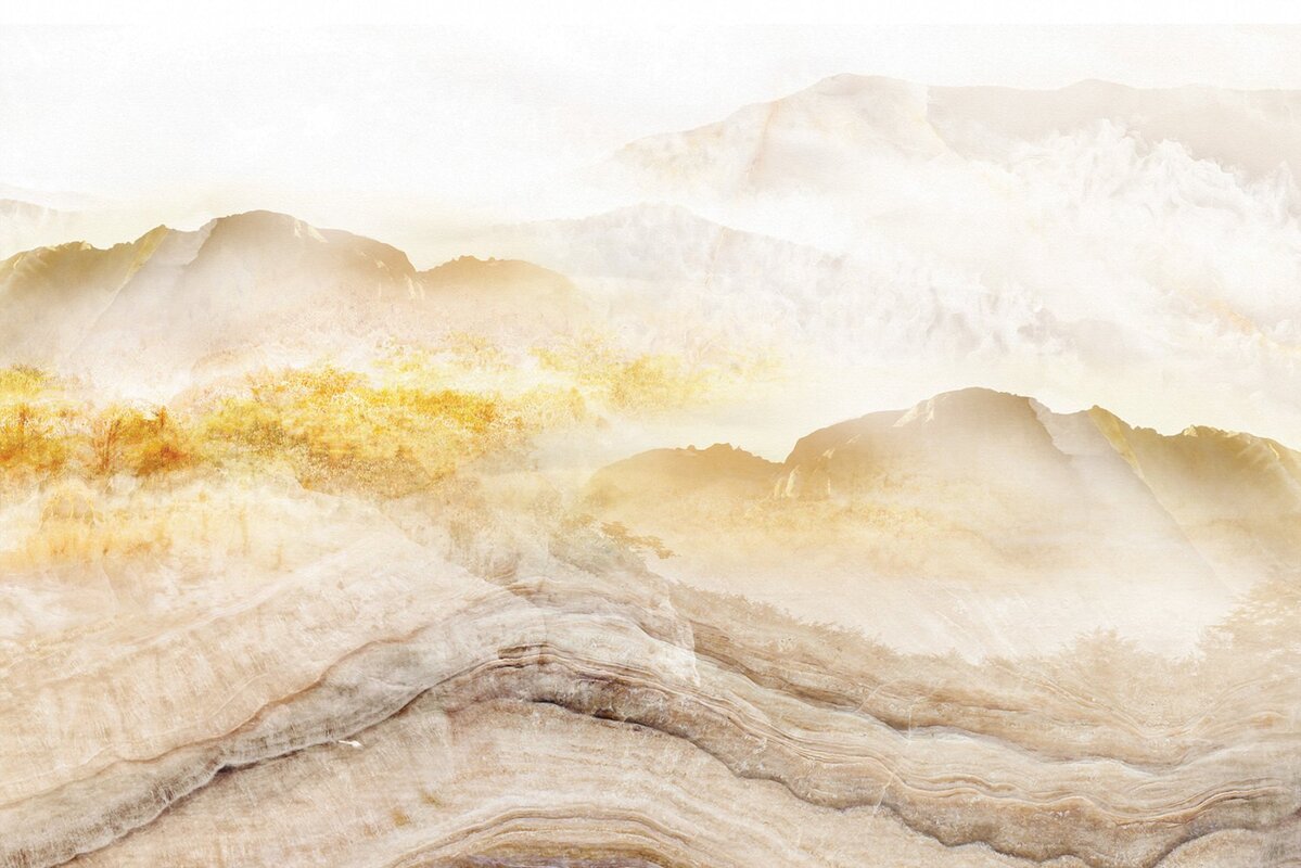 Fototapete: Beigefarbene Marmorgebirge im Nebel
